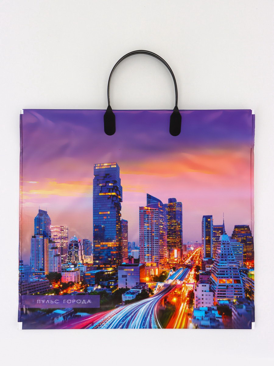 Пакет "Пульс города", полиэтиленовый с пластиковой ручкой, 37x34 см, 80 мкм, Интерпак, Россия