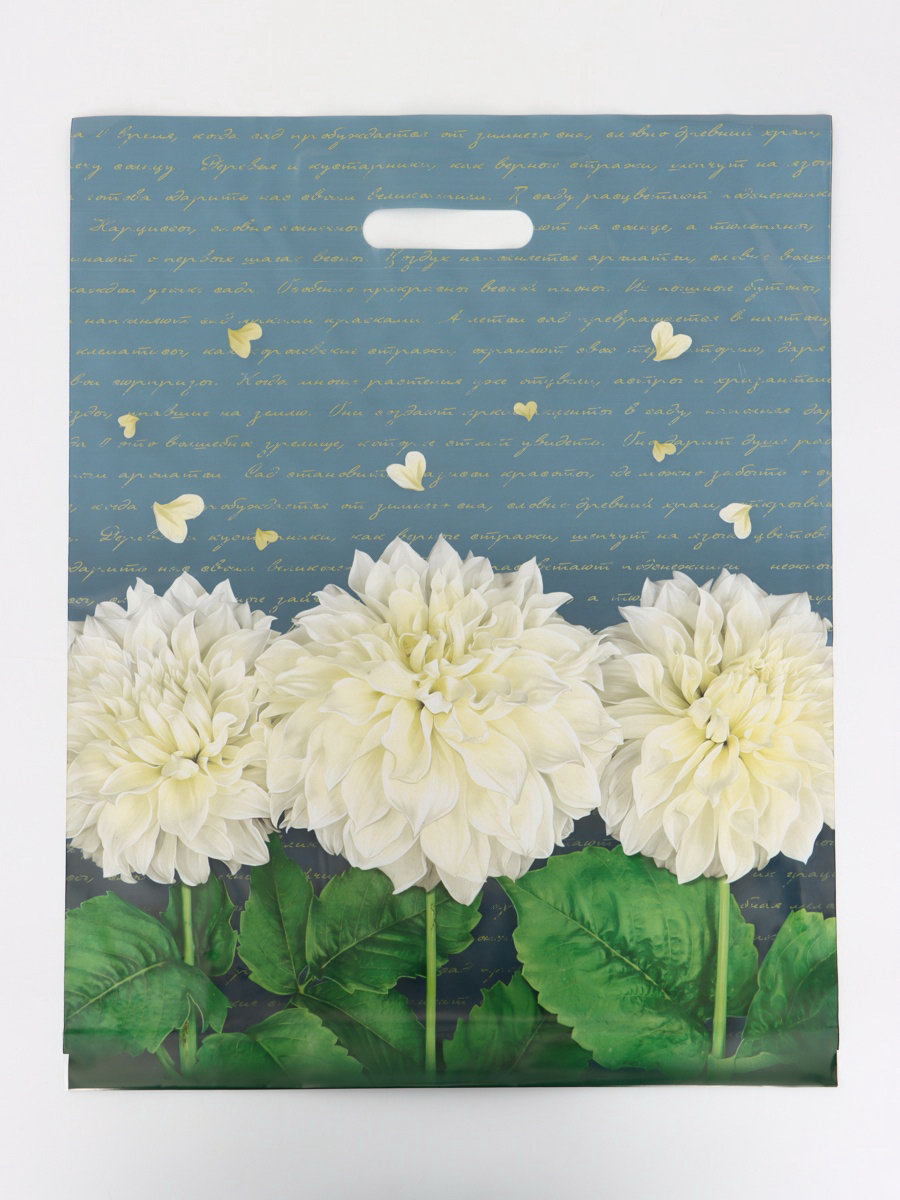 Для цветочных салонов и сувенирных магазинов: Донная складка обеспечивает устойчивость на транспортных лентах. Голубой фон гармонирует с пастельной палитрой весенних коллекций. Пакет используют для упаковки парфюмерных наборов, текстильных изделий и праздничных композиций. Плотность материала соответствует стандартам профессиональной упаковки. | ||