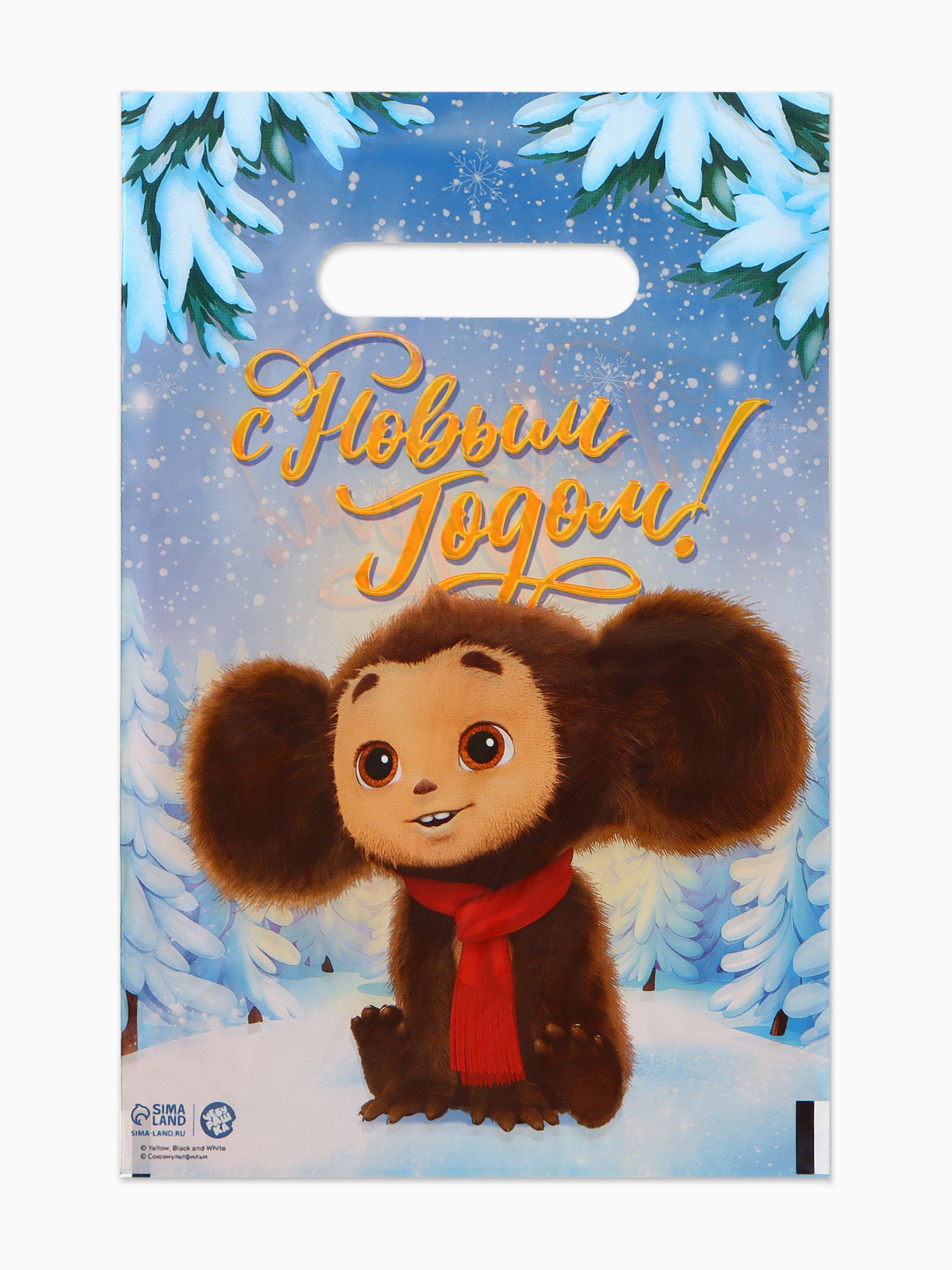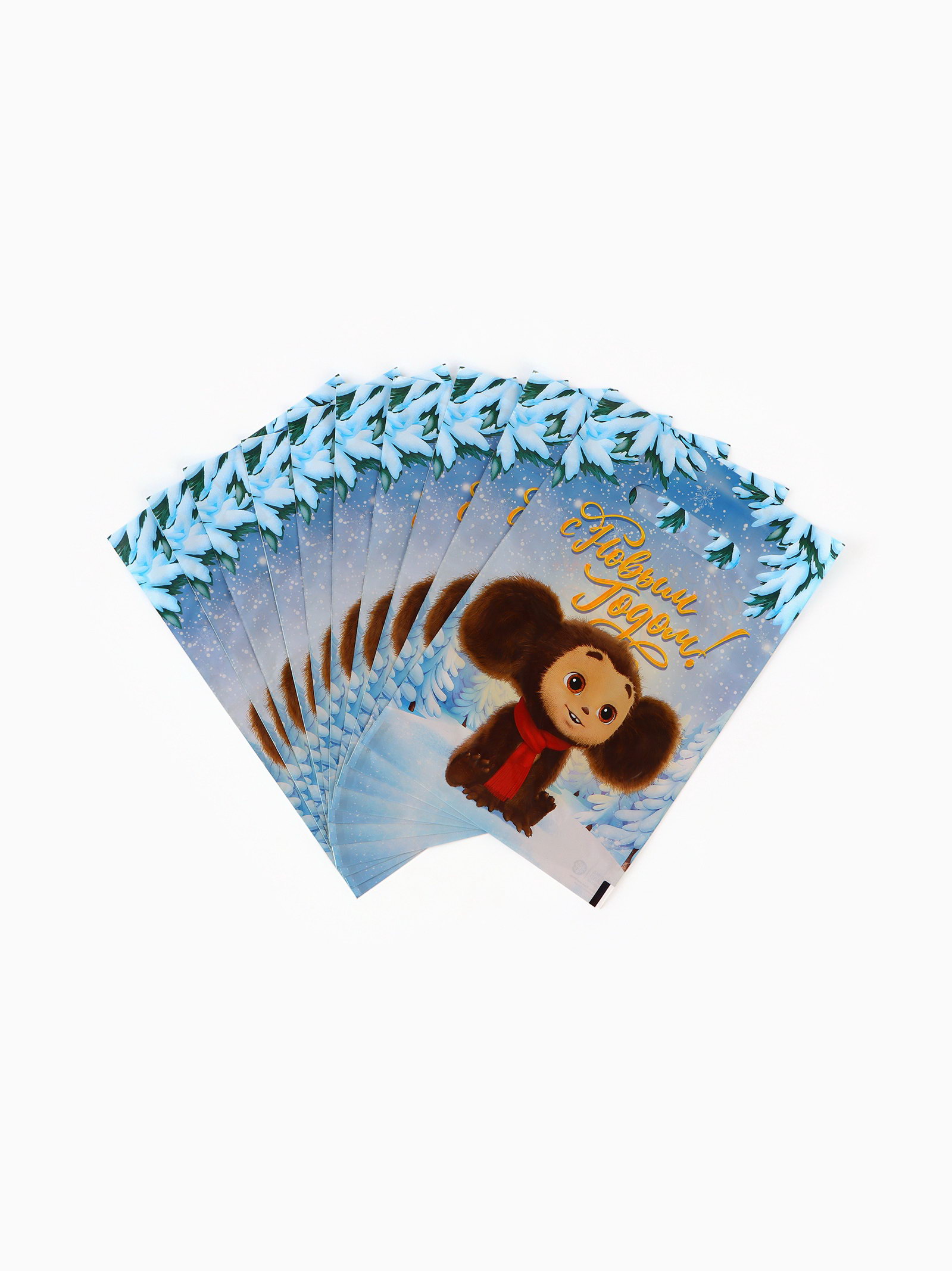 Подарочные пакеты, полиэтилен, набор 10 шт "Новый год", Чебурашка, 20 x 30 см, ЧЕБУРАШКА, Россия