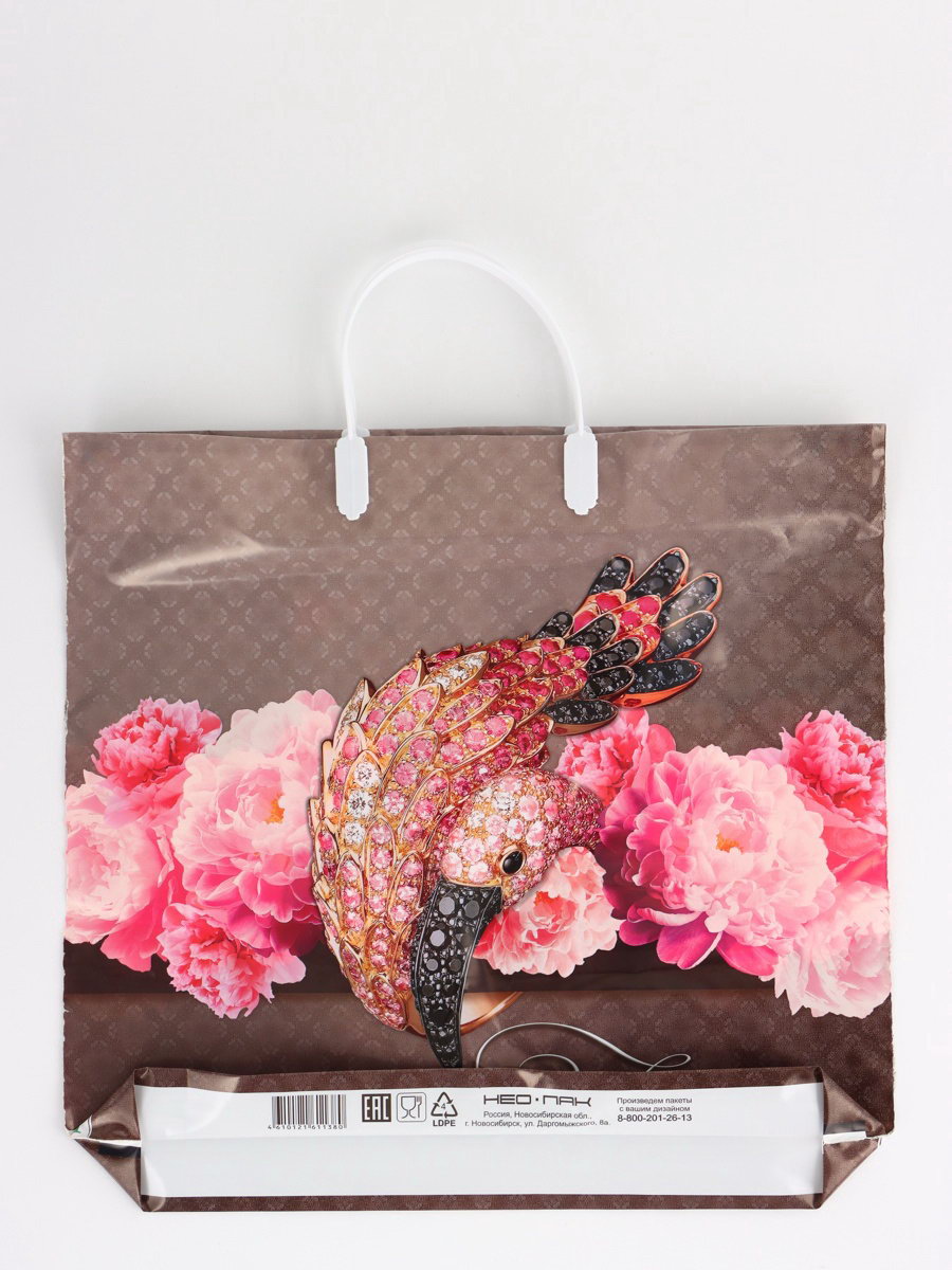 Пакет "Розовый фламинго", полиэтиленовый, пластиковая ручка, 37x35 см, 90 мкм, Россия
