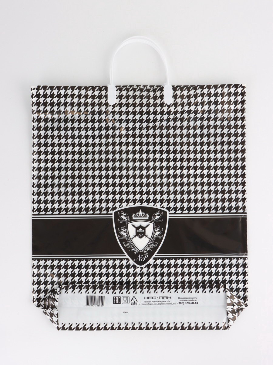 Цвет: Белый, Чёрный Тематика: Клетка, Узоры Размер упаковки: 20 x 0.1 x 38 см. Расширение: Донная складка tnved: 3923210000 Рекомендуемая нагрузка, кг: 5 Примерный размер: XL (~ 32см x 45см) Для кого: Унисекс Дизайн: С рисунком, надписью Толщина, мкм: 90 Тематика праздника: Универсальная тематика Вид ручки: Пластиковая Температурное ограничение: Нет Сумка для тех, кто ценит классику. Прочный пакет со строгим дизайном "Герб" это аксессуар сдержанного стиля. Его графичный рисунок и чёрно-белая гамма подходят для деловых подарков, учебных нужд или как стильный повседневный вариант.