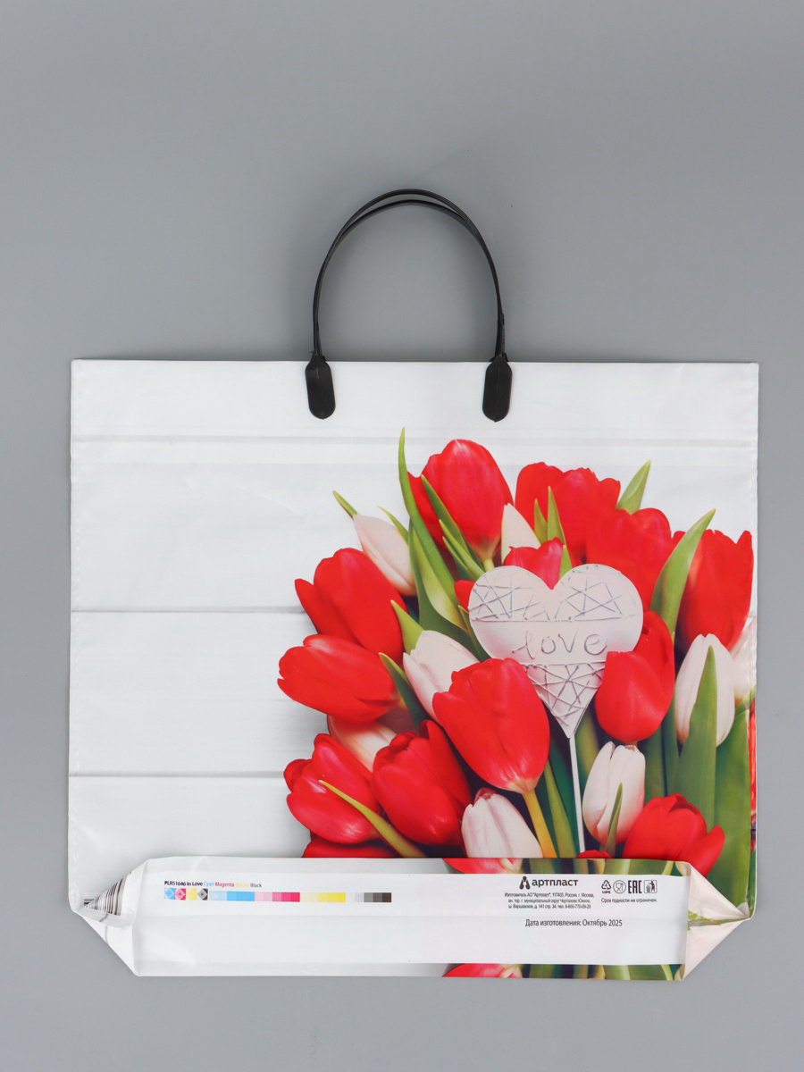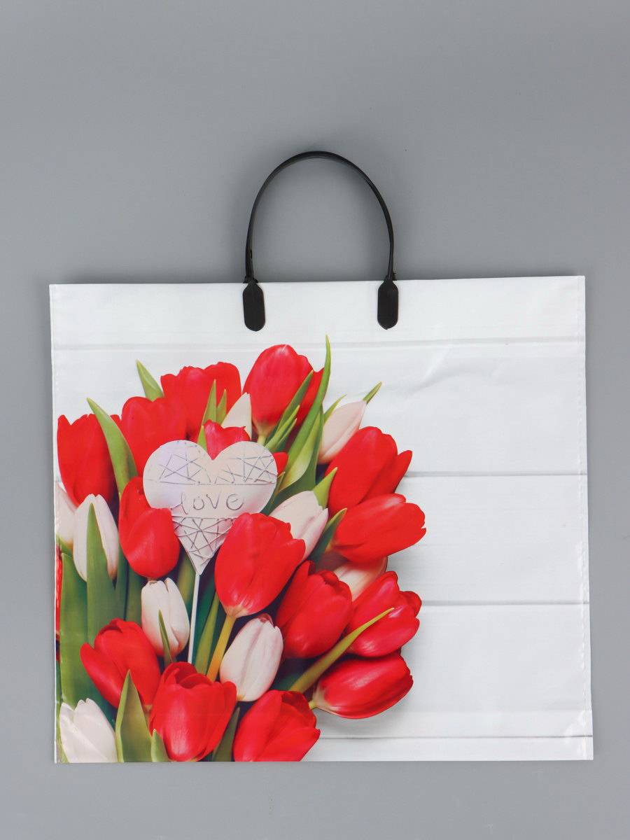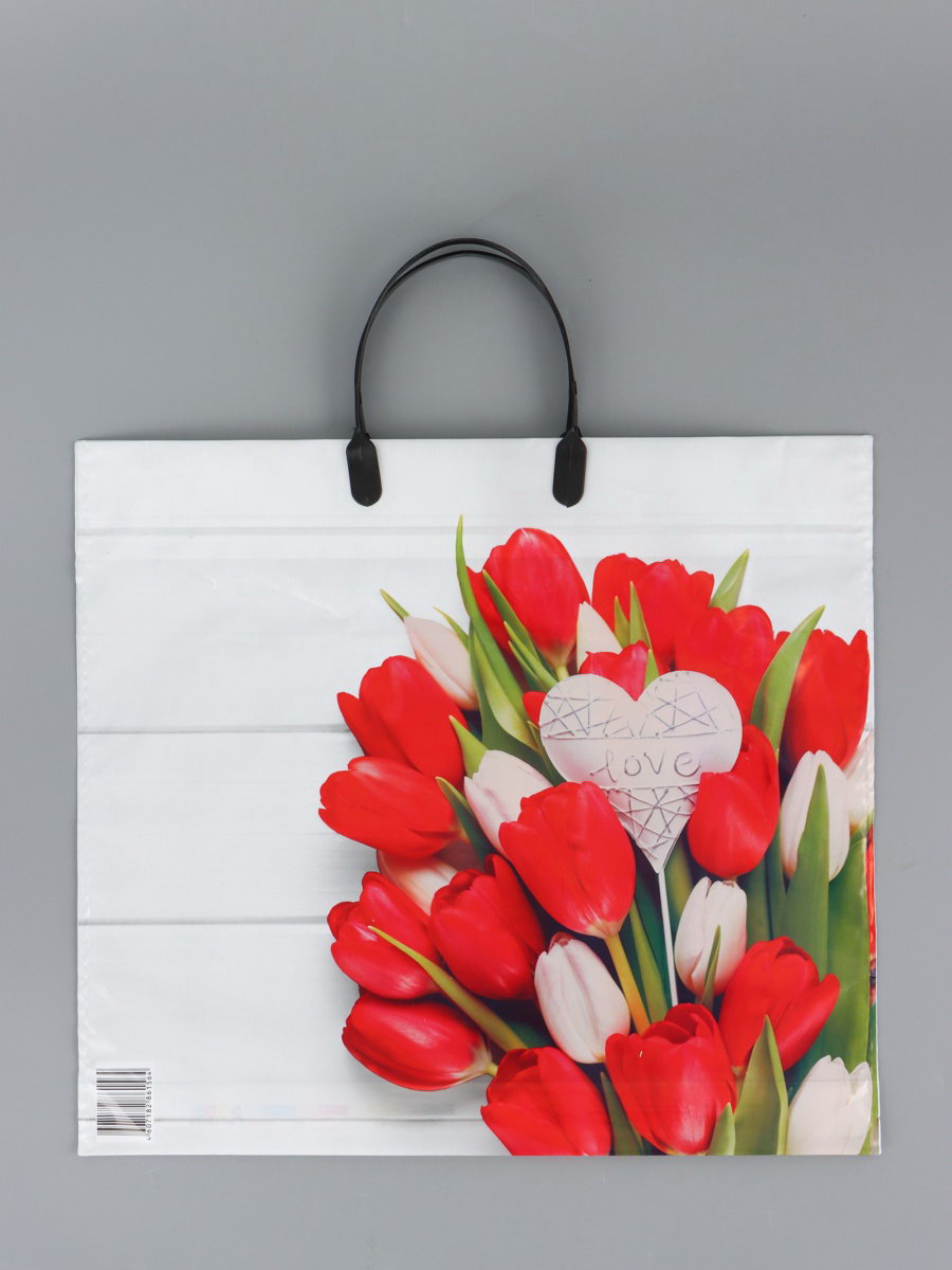 Пакет "С любовью", полиэтиленовый с пластиковой ручкой, 38x34 + 3 см, 90 мкм, Россия