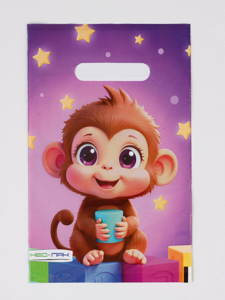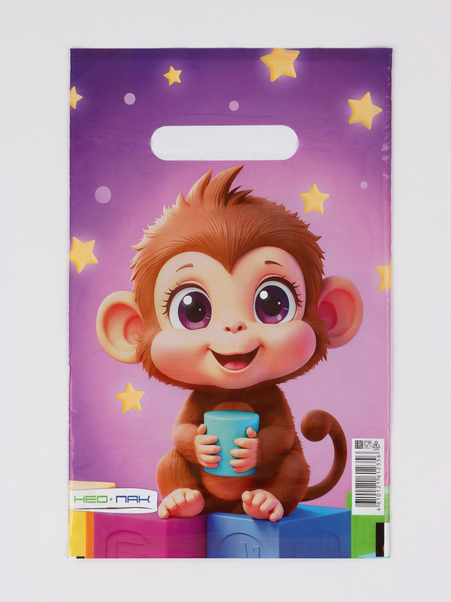 Пакет подарочный "Обезьянка", полиэтиленовый с вырубной ручкой, 20x30 см, 30 мкм, НЕО-ПАК, Россия