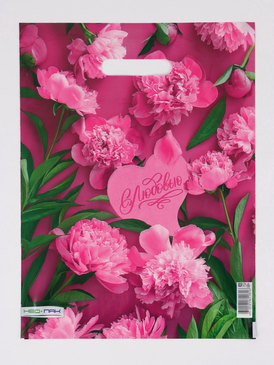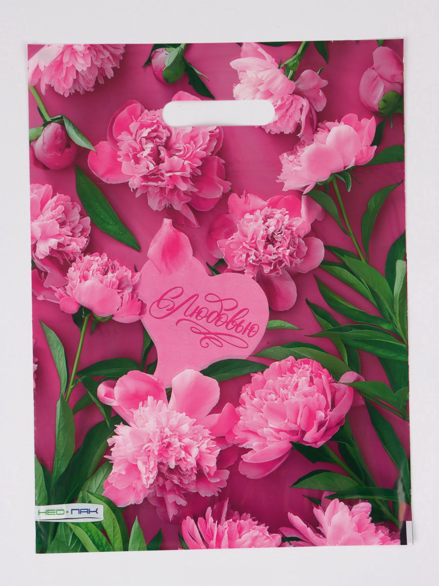Пакет "Розовые пионы", полиэтиленовый с вырубной ручкой 30x40 см, 60 мкм, НЕО-ПАК, Россия