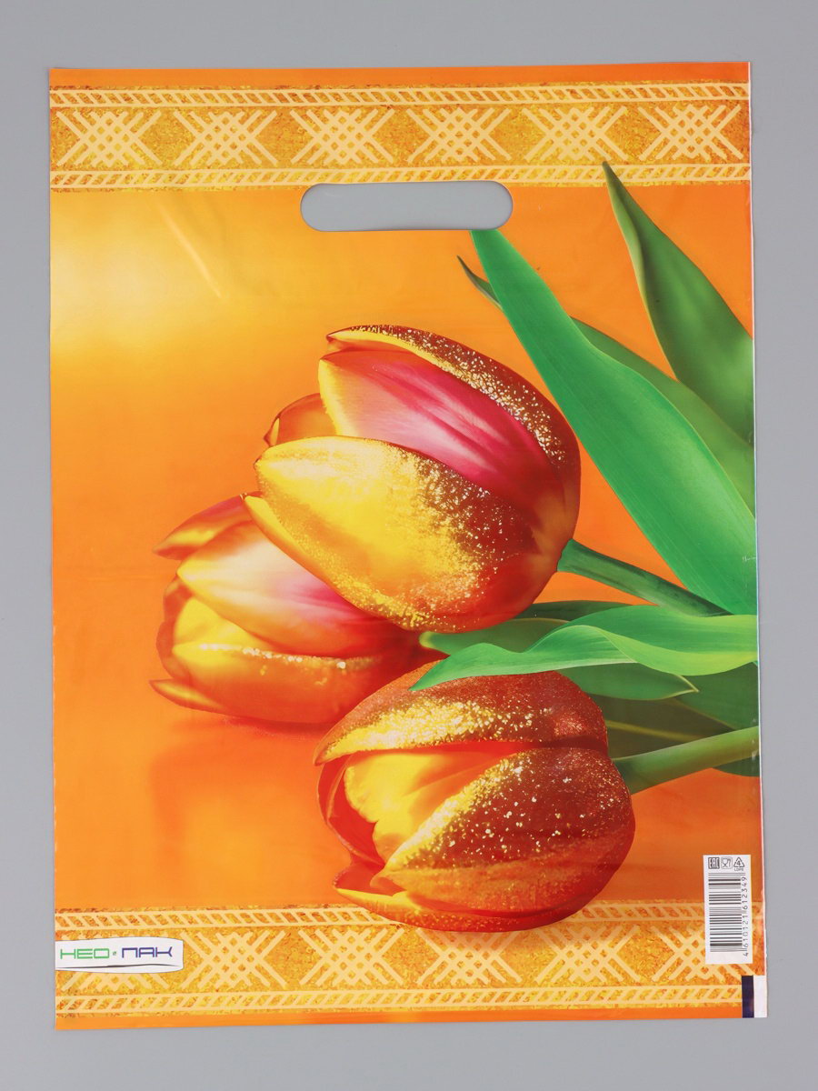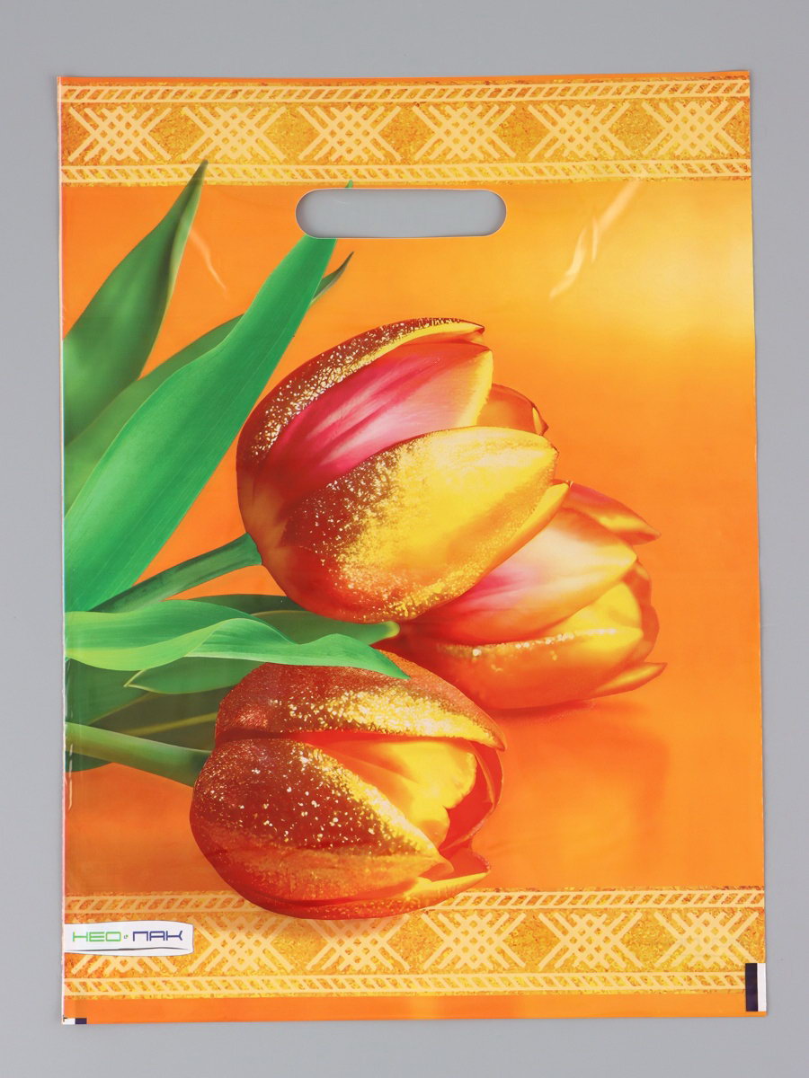 Пакет "Желтые тюльпаны, полиэтиленовый с вырубной ручкой 30х40 см, 60 мкм, Россия