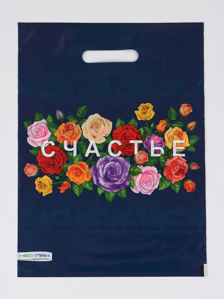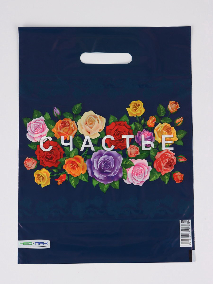 Пакет подарочный "Счастье", полиэтиленовый с вырубной ручкой 30x40 см, 60 мкм, НЕО-ПАК, Россия