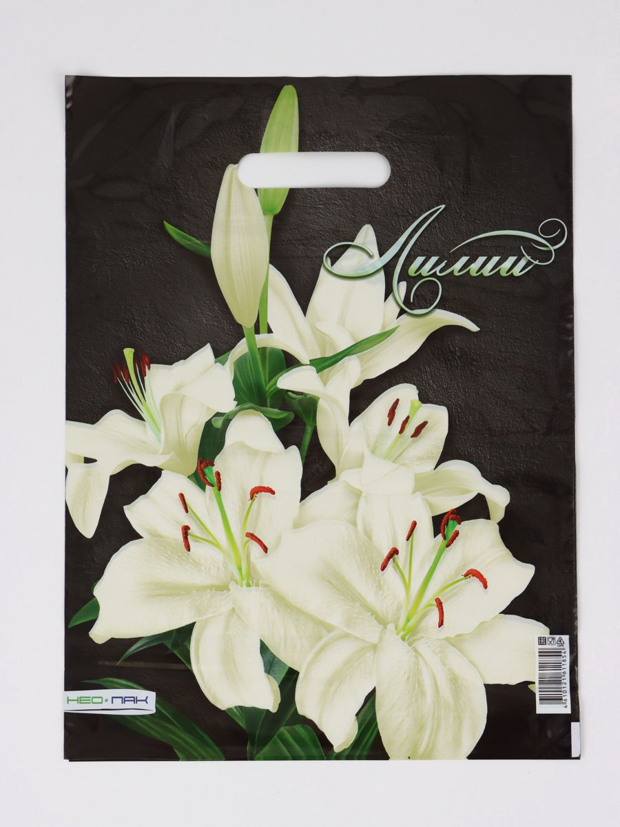 Пакет "Лилии", полиэтиленовый с вырубной ручкой 30x40 см, 60 мкм, НЕО-ПАК, Россия