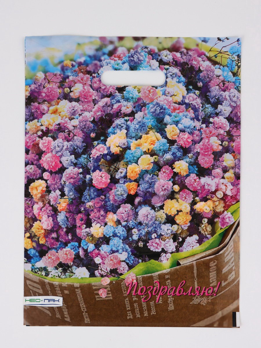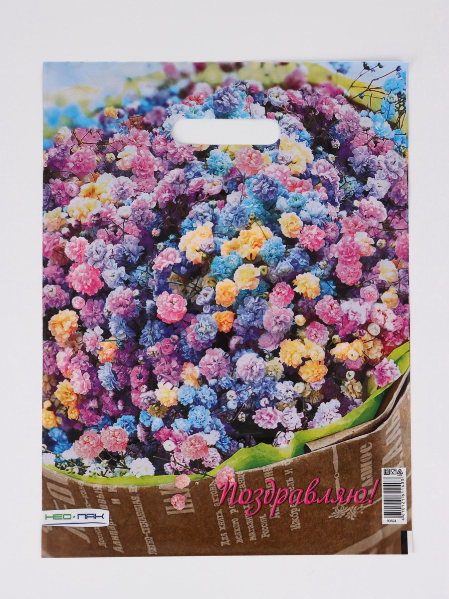 Пакет подарочный "Райский букет", полиэтиленовый с вырубной ручкой 30x40 см, 60 мкм, НЕО-ПАК, Россия