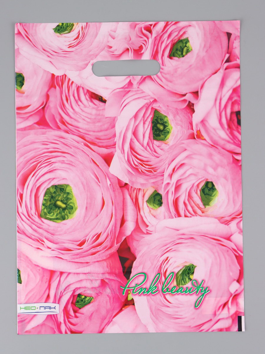 Пакет "Розовый букет, полиэтиленовый с вырубной ручкой 30х40 см, 60 мкм, Россия