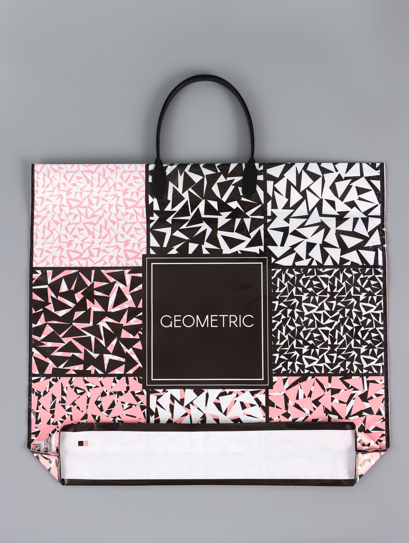 Цвет: Розовый, Чёрный Тематика: Геометрия, Надписи, цифры, буквы Размер упаковки: 25 x 0.2 x 40 см. tnved: 3923210000 Температурное ограничение: Нет Толщина, мкм: 90 Дизайн: С рисунком, надписью Вид ручки: Пластиковая Примерный размер: XL (~ 32см x 45см) Для кого: Унисекс Тематика праздника: Универсальная тематика Расширение: Донная складка Максимальная прочность в графичном стиле. Пакет "Геометрия" с пластиковой ручкой, 38x34 см это сверхплотная и вместительная упаковка с абстрактным дизайном. Ее усиленная конструкция рассчитана на тяжелые и ценные покупки.