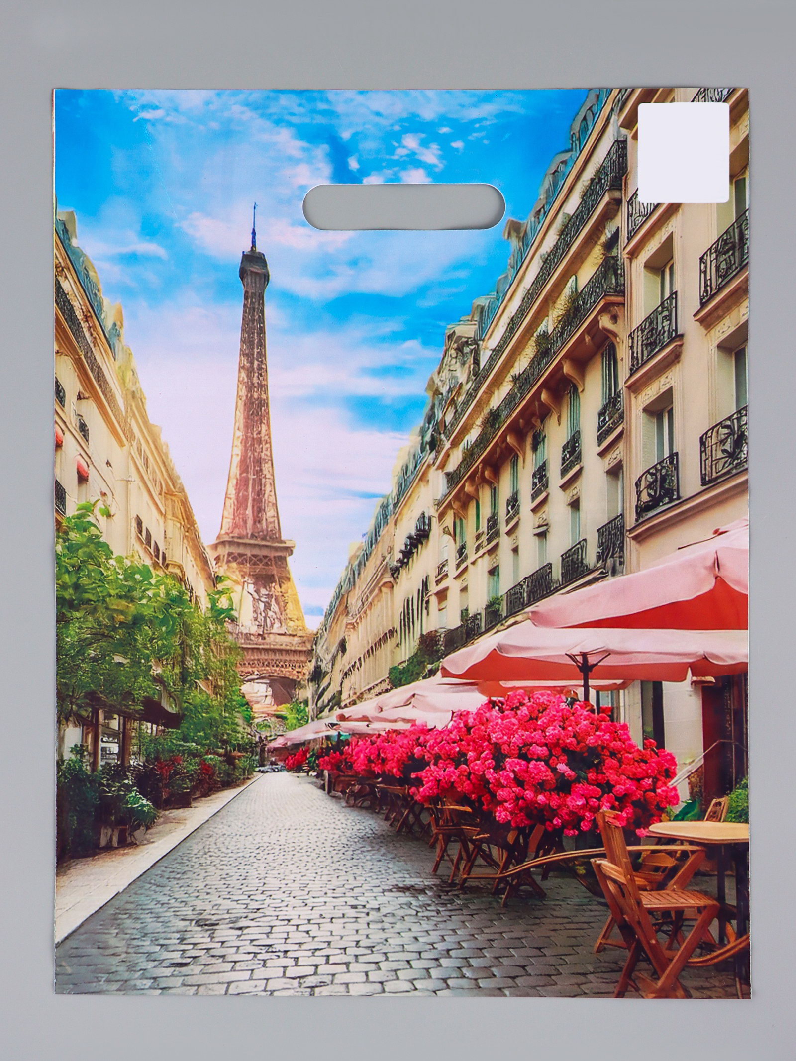 Пакет подарочный "Париж", полиэтиленовый с вырубной ручкой, 31x40 см, 60 мкм, Артпласт, Россия