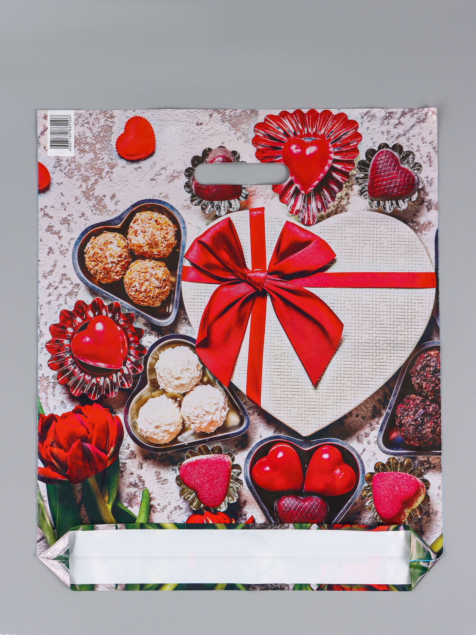 Пакет "Сладкое сердце", полиэтиленовый с вырубной ручкой, 38x45 + 3 см, 50 мкм, Россия