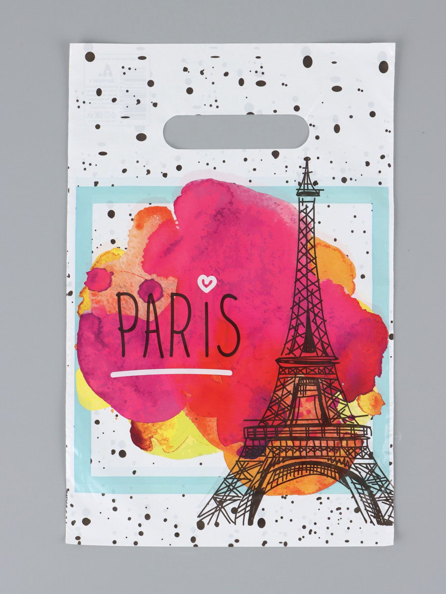 Пакет "Свидание в Париже", полиэтиленовый с вырубной ручкой, 20 x 30 см, 30 мкм, Россия