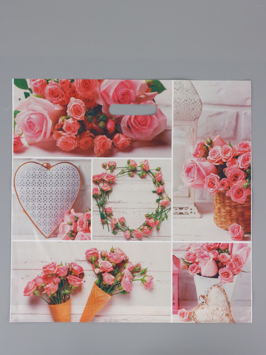 Пакет "Романтичная роза", полиэтиленовый с вырубной ручкой, 45 x 45 + 3 см, 65 мкм, Россия