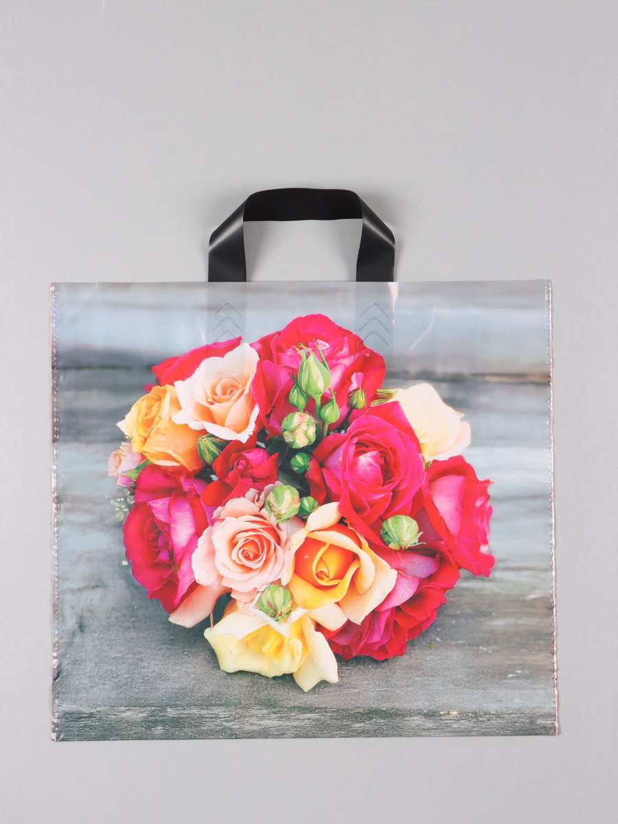 Пакет "Волшебный букет", полиэтиленовый с петлевой ручкой, 38x34 + 3 см, 70 мкм, Россия