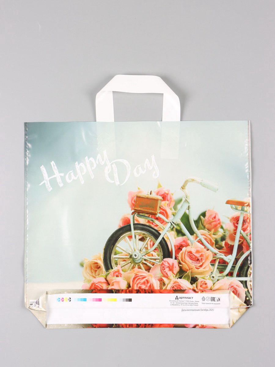 Пакет "Счастливый день", полиэтиленовый с петлевой ручкой, 38x34 + 3 см, 70 мкм, Россия