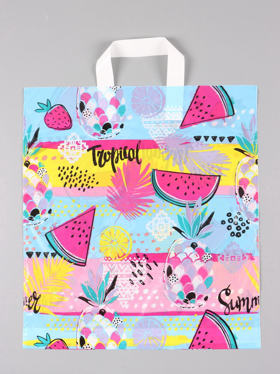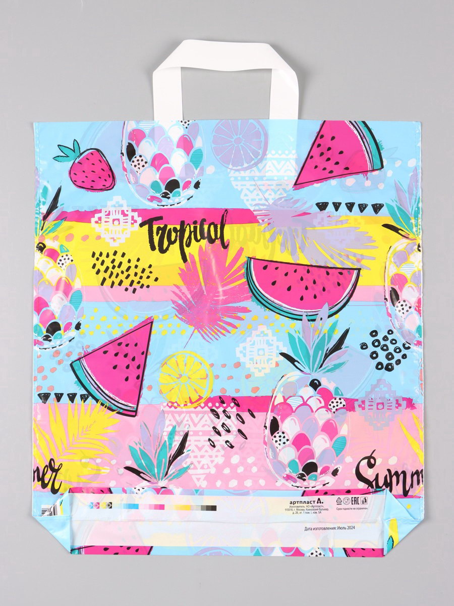 Пакет "Тропические фрукты", полиэтиленовый с петлевой ручкой, 38x42 + 3 см, 37 мкм, Россия