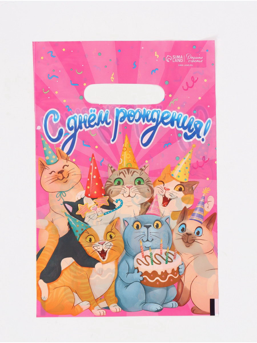 Подарочный пакет, полиэтиленовый, с вырубной ручкой, "С Днём рождения", 20 x 30 см, Дарите Счастье, Россия
