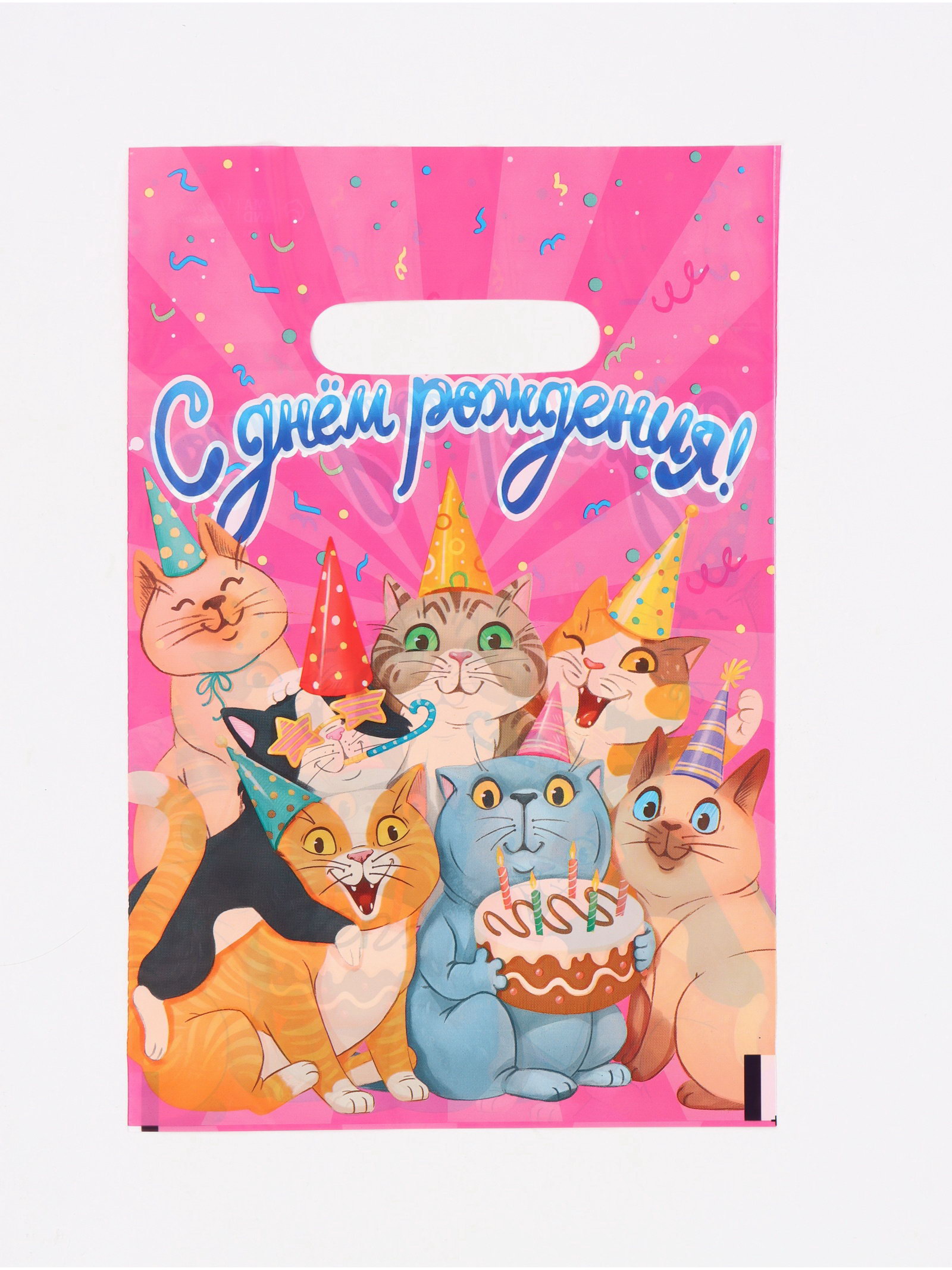 Подарочный пакет, полиэтиленовый, с вырубной ручкой, "С Днём рождения", 20 x 30 см, Россия