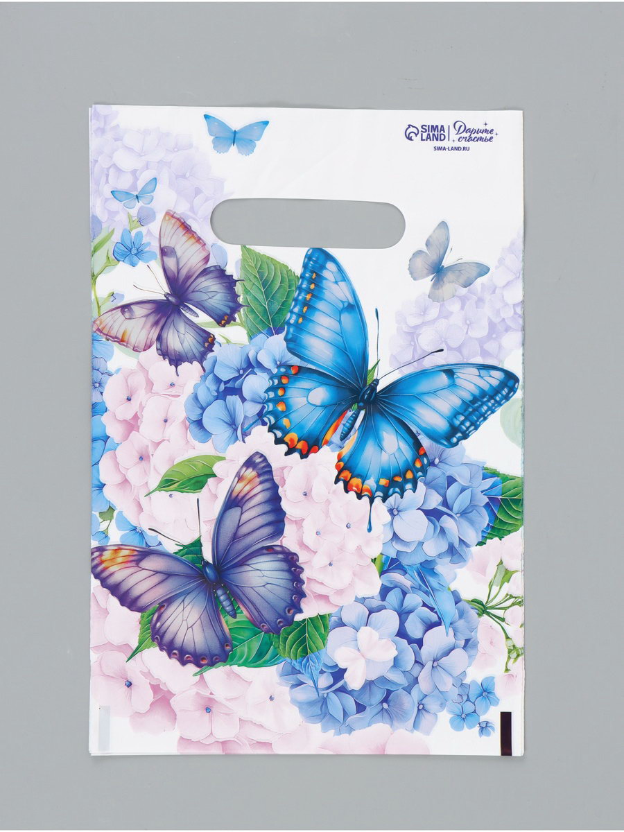 Подарочный пакет, полиэтиленовый, с вырубной ручкой, "Бабочки", 20 x 30 см, Дарите Счастье, Россия