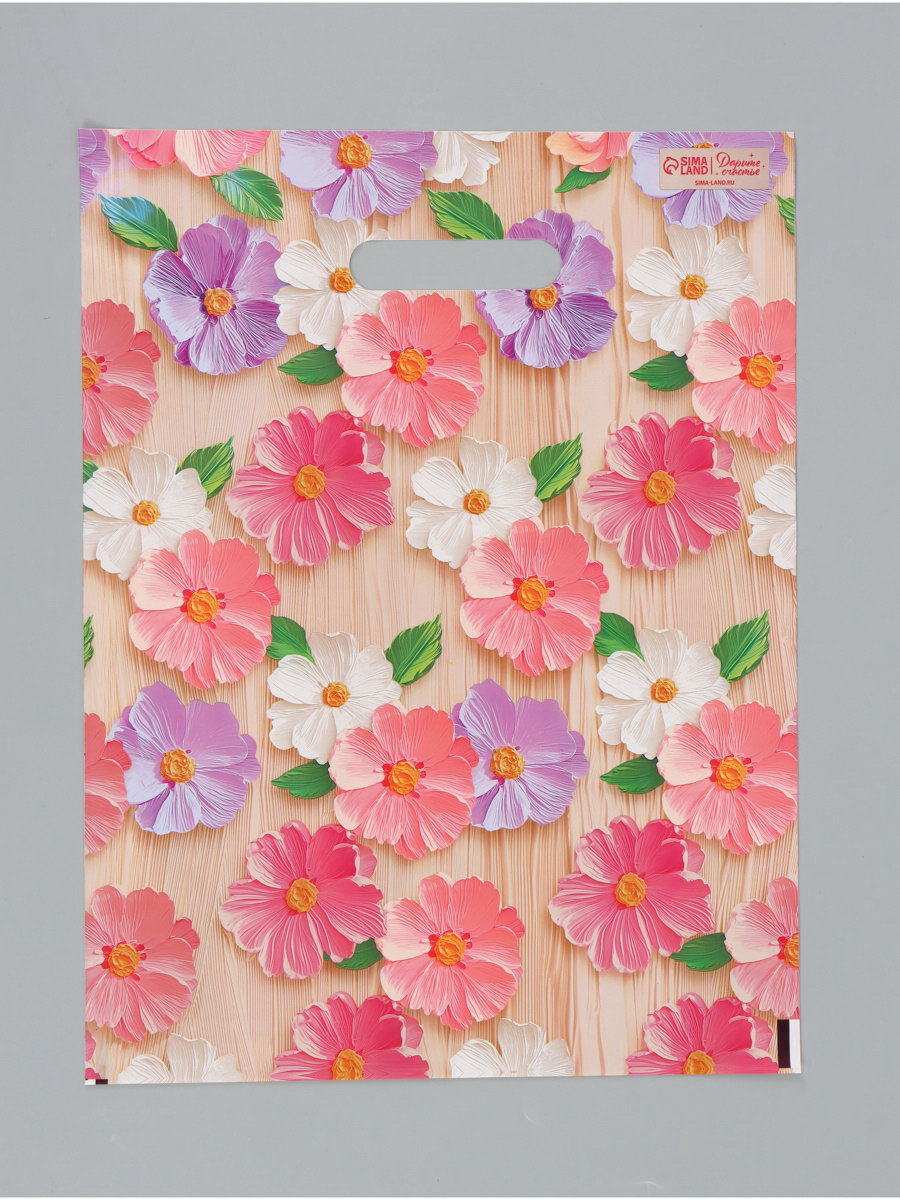 Подарочный пакет, полиэтиленовый, с вырубной ручкой, "Цветы", 30 x 40 см, Дарите Счастье, Россия