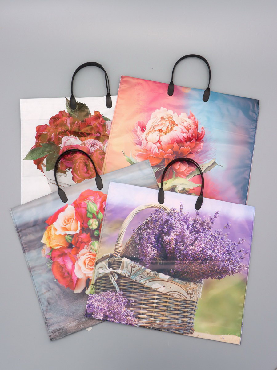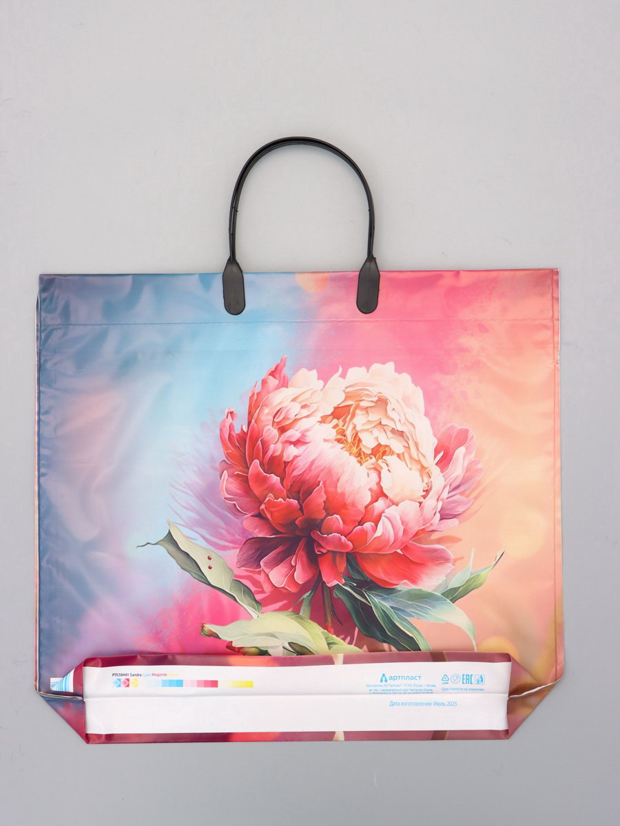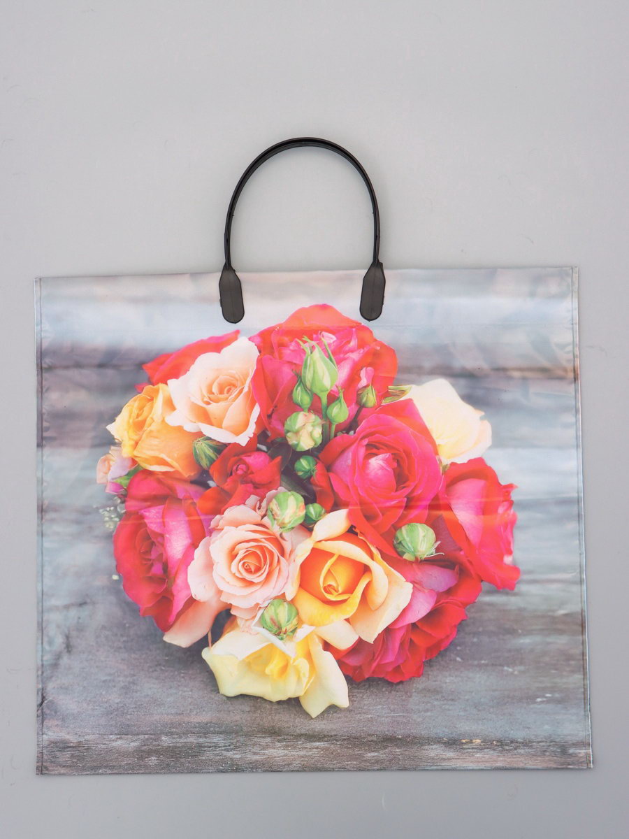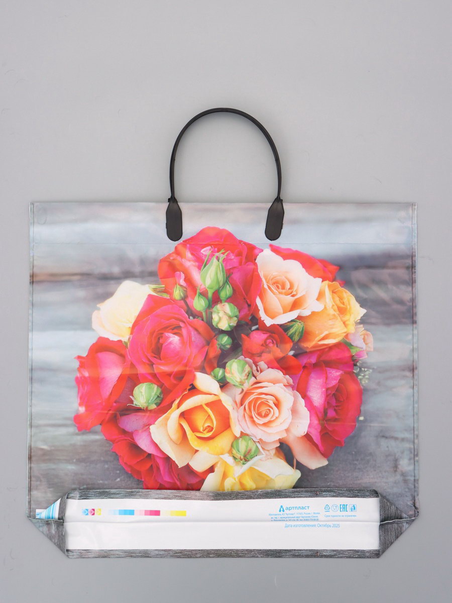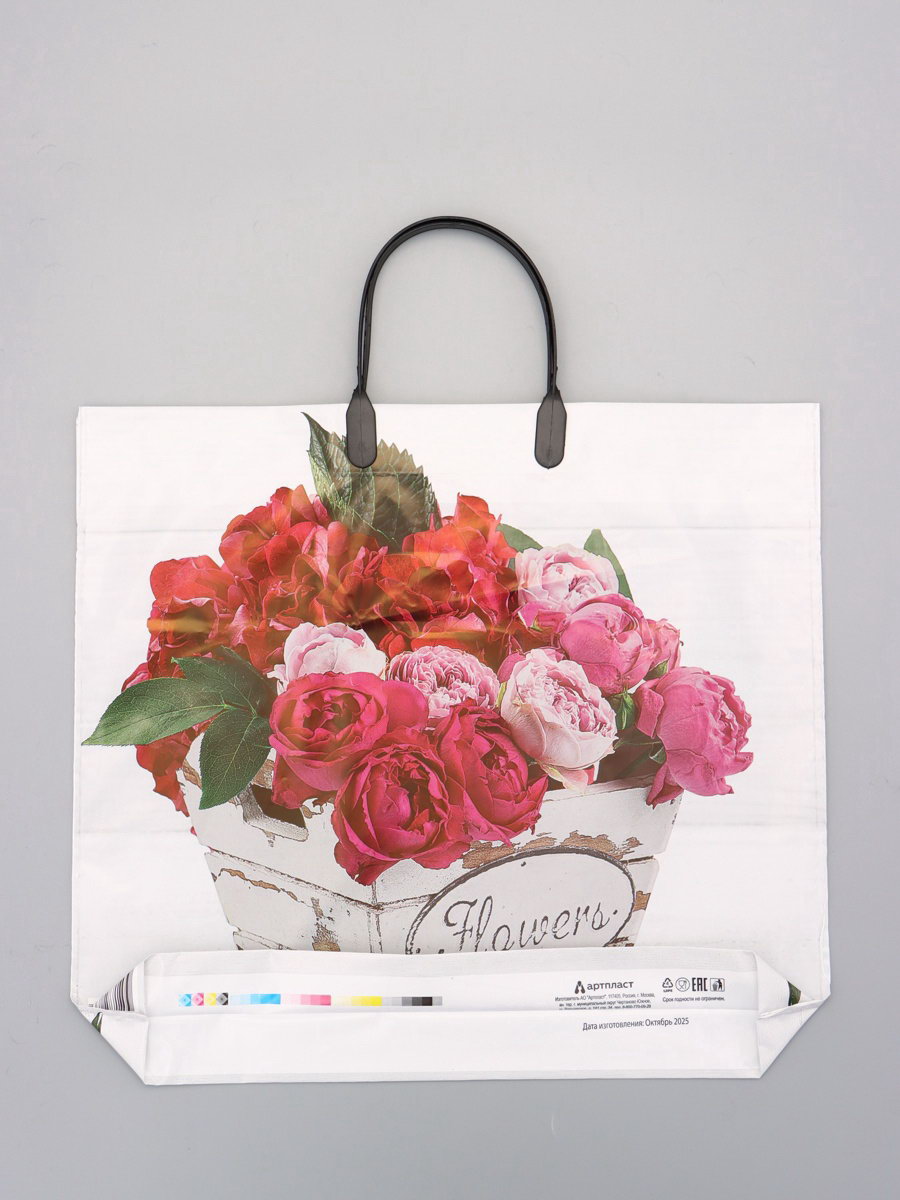 Пакет "Цветы ассорти", полиэтиленовый с пластиковой ручкой, 38x34 + 3 см, 90 мкм, Россия