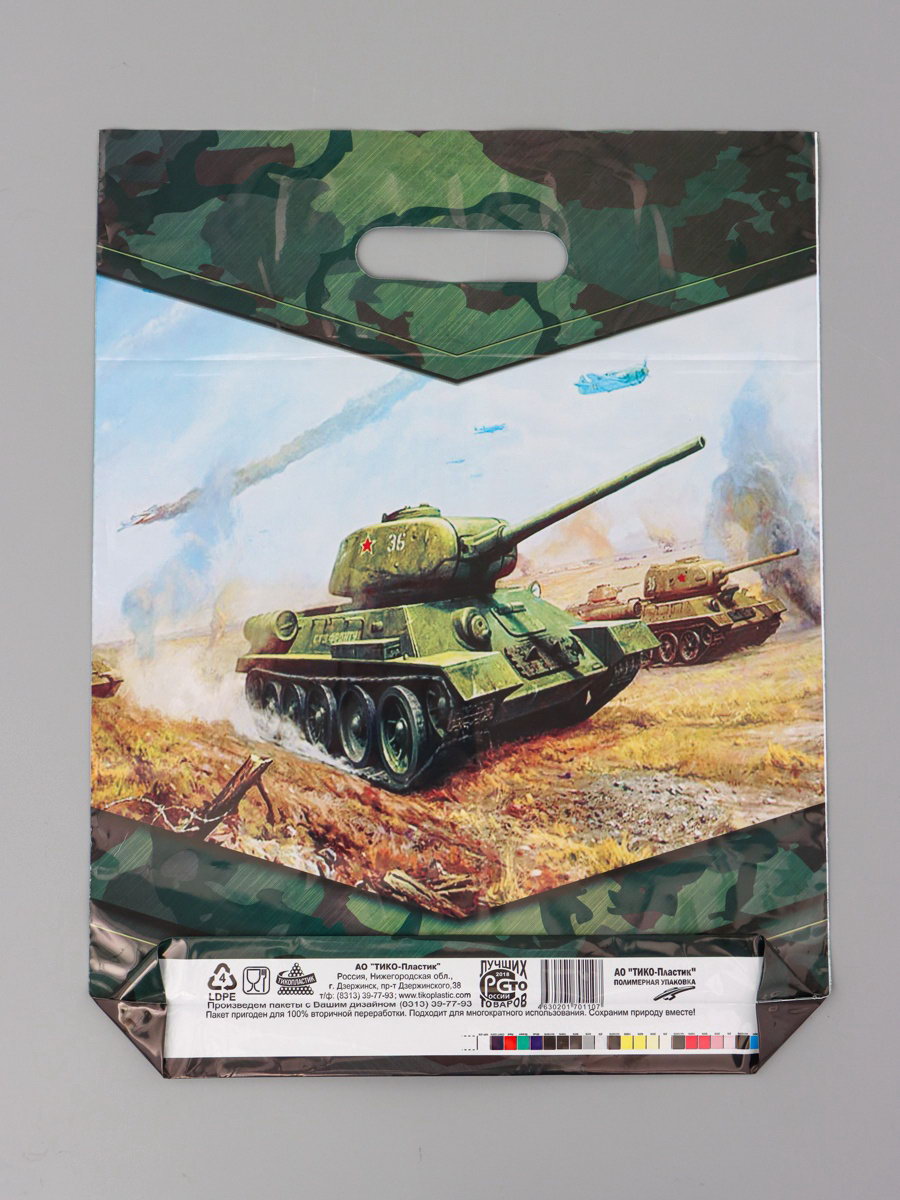 Пакет подарочный "Танк легенда" полиэтиленовый с вырубной ручкой, 40x31 см 60 мкм, Россия