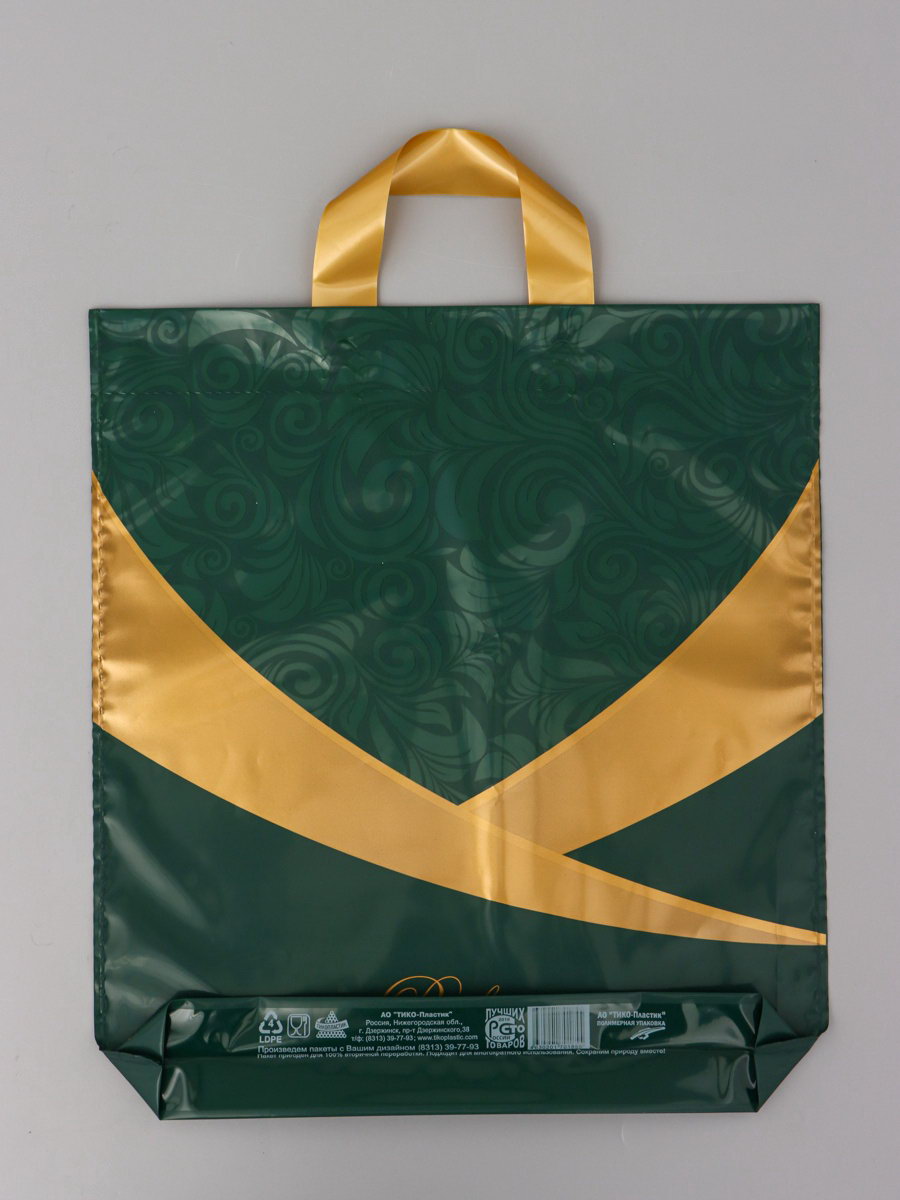 Пакет подарочный "Перфекто Малахит" полиэтиленовый с петлевой ручкой, 40x37 см 95 мкм, Россия
