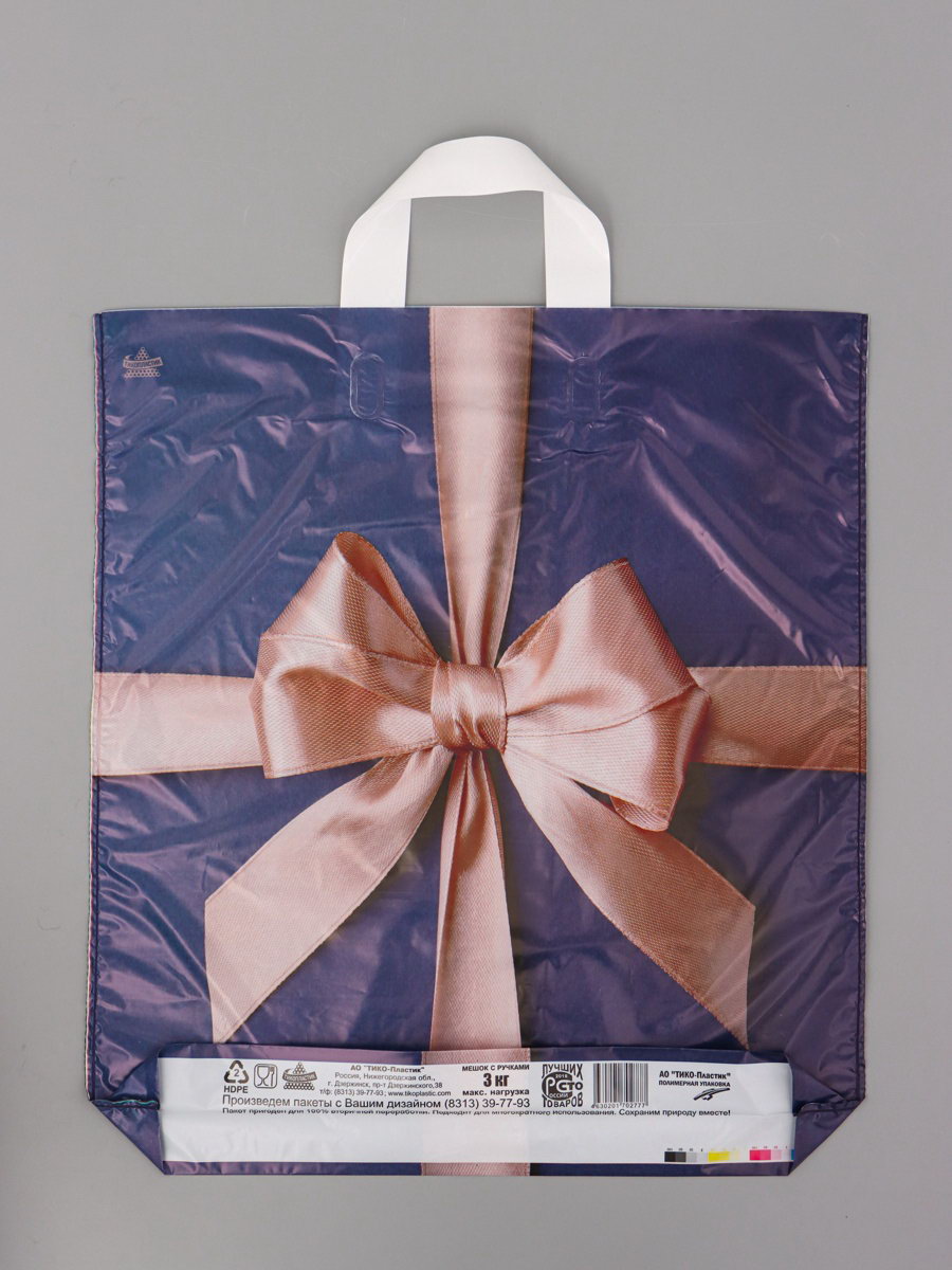 Пакет подарочный "Бант Мокко" полиэтиленовый, с петлевой ручкой, 42x38 см 37 мкм, Россия