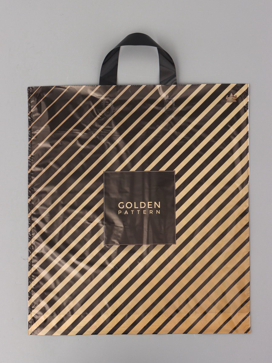 Тематика: Линии, Полоски, полоса Цвет: Золотистый, Чёрный Размер упаковки: 20.5 x 0.1 x 38 см. tnved: 3923291000 Температурное ограничение: Нет Дизайн: С рисунком, надписью Примерный размер: XL (~ 32см x 45см) Для кого: Унисекс Вид ручки: Петлевая Расширение: Донная складка Толщина, мкм: 37 Тематика праздника: Универсальная тематика Динамика золота на черном. Подарочный пакет "Стремление" с петлевой ручкой это упаковка, визуализирующая идею движения и скорости. Диагональные золотые полосы, рассекающие глубокий черный фон, создают мощный графический образ целеустремленности и энергии.