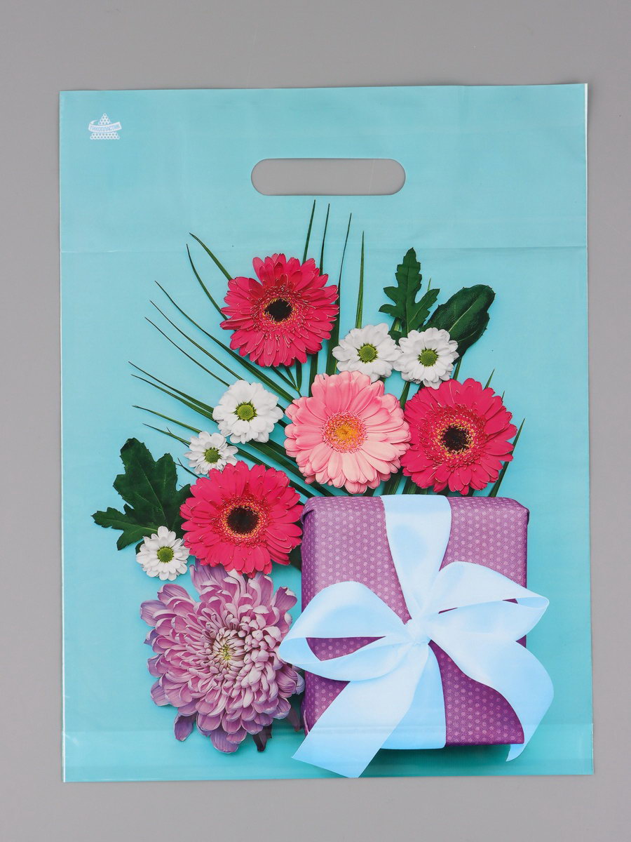 Пакет подарочный полиэтиленовый с вырубной ручкой "Подарочная композиция" 40x31 см, 60 мкм, Россия