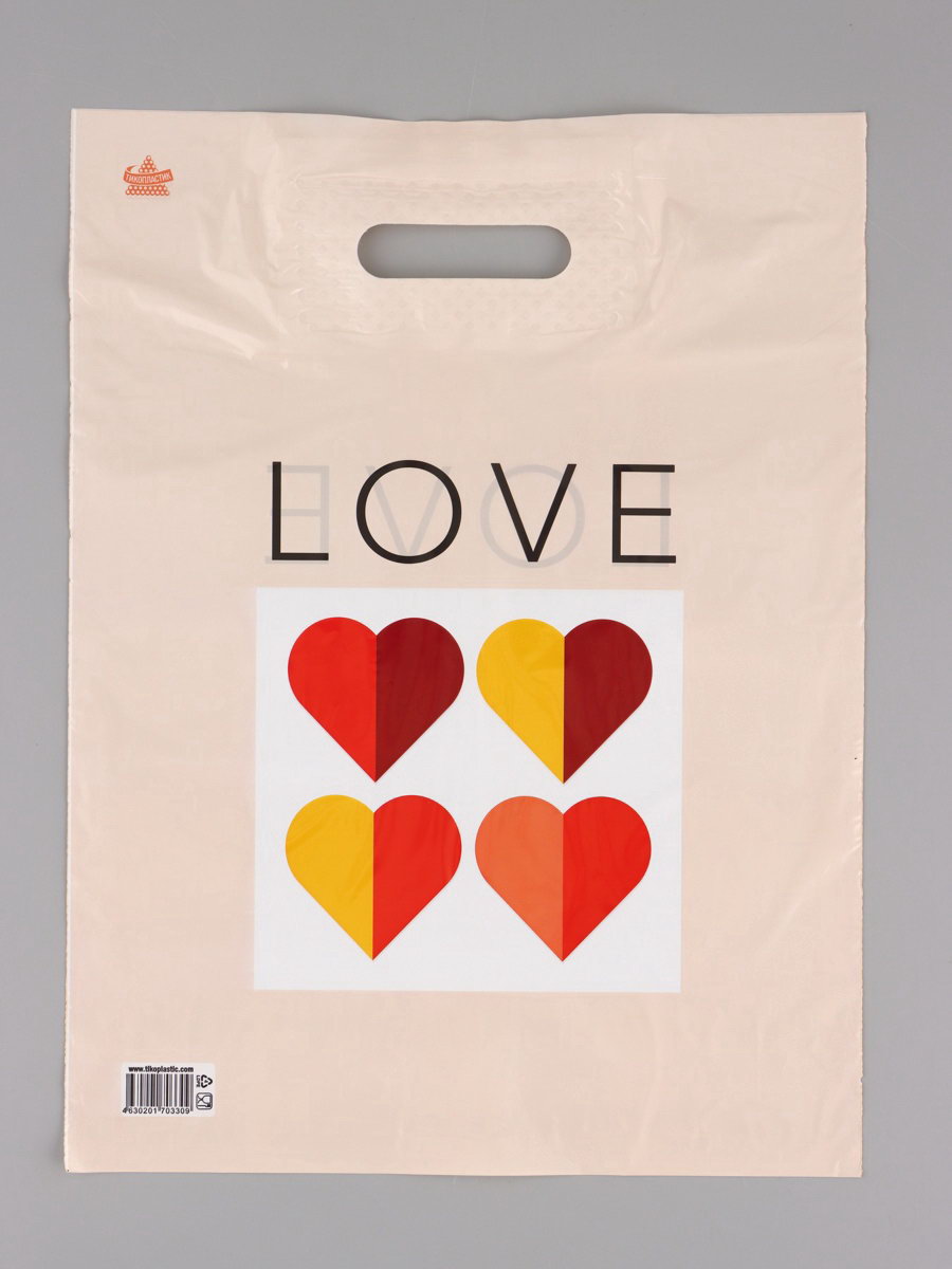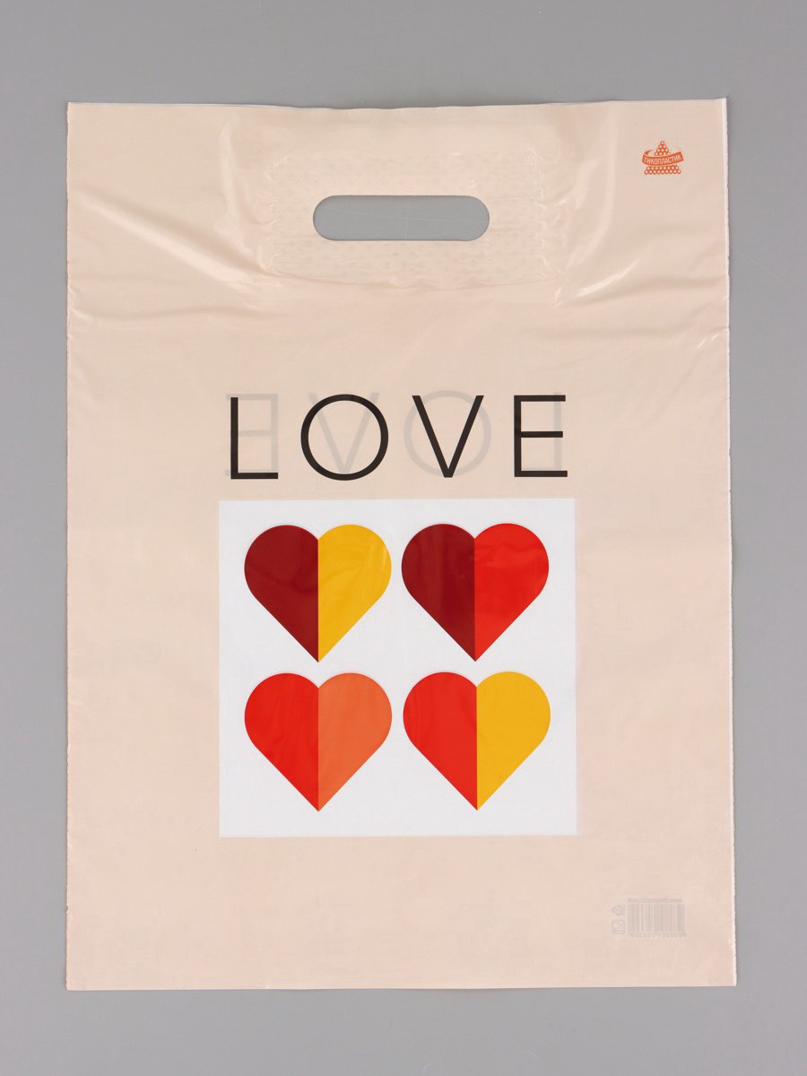 Пакет подарочный полиэтиленовый с вырубной ручкой "Любовь в геометрии" 40x31 см, 30 мкм, Россия