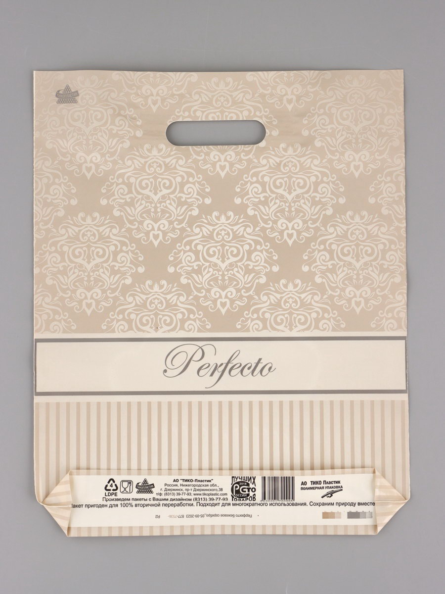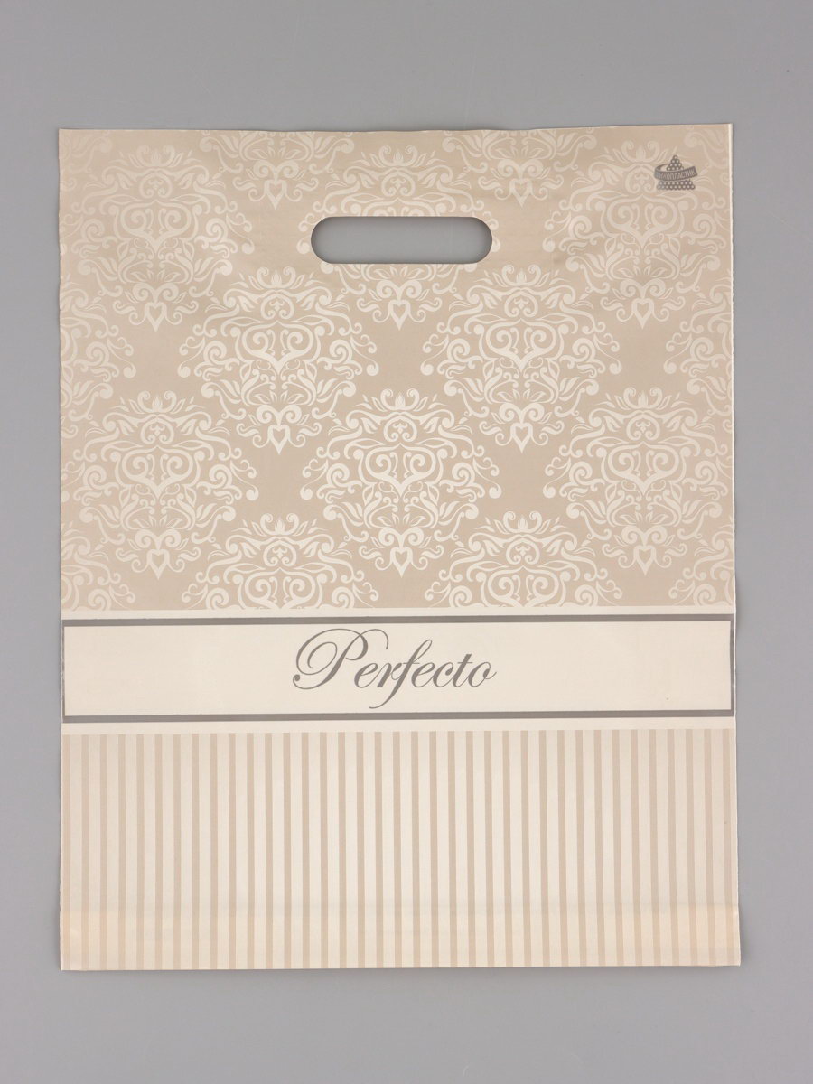 Пакет подарочный полиэтиленовый с вырубной ручкой "Перфекто Бежевое серебро" 37x30 см, 90 мкм, Россия
