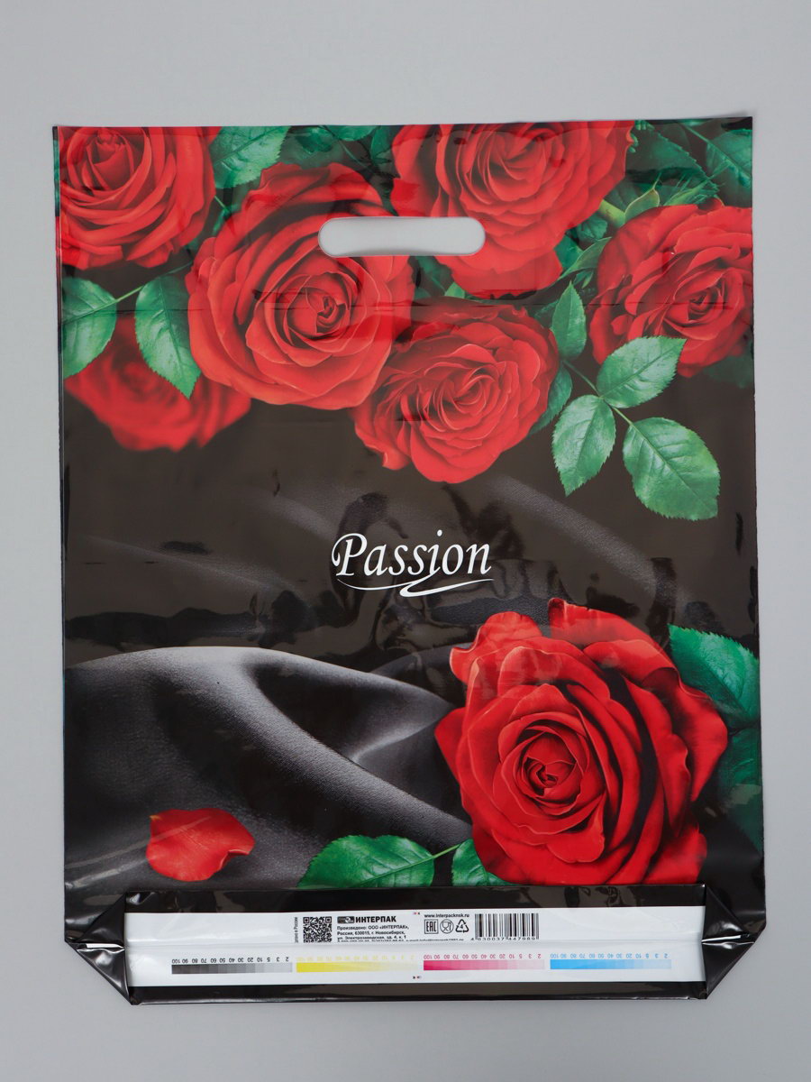 Пакет "Страсть", полиэтиленовый с вырубной ручкой, 38x47 см, 60 мкм, Россия