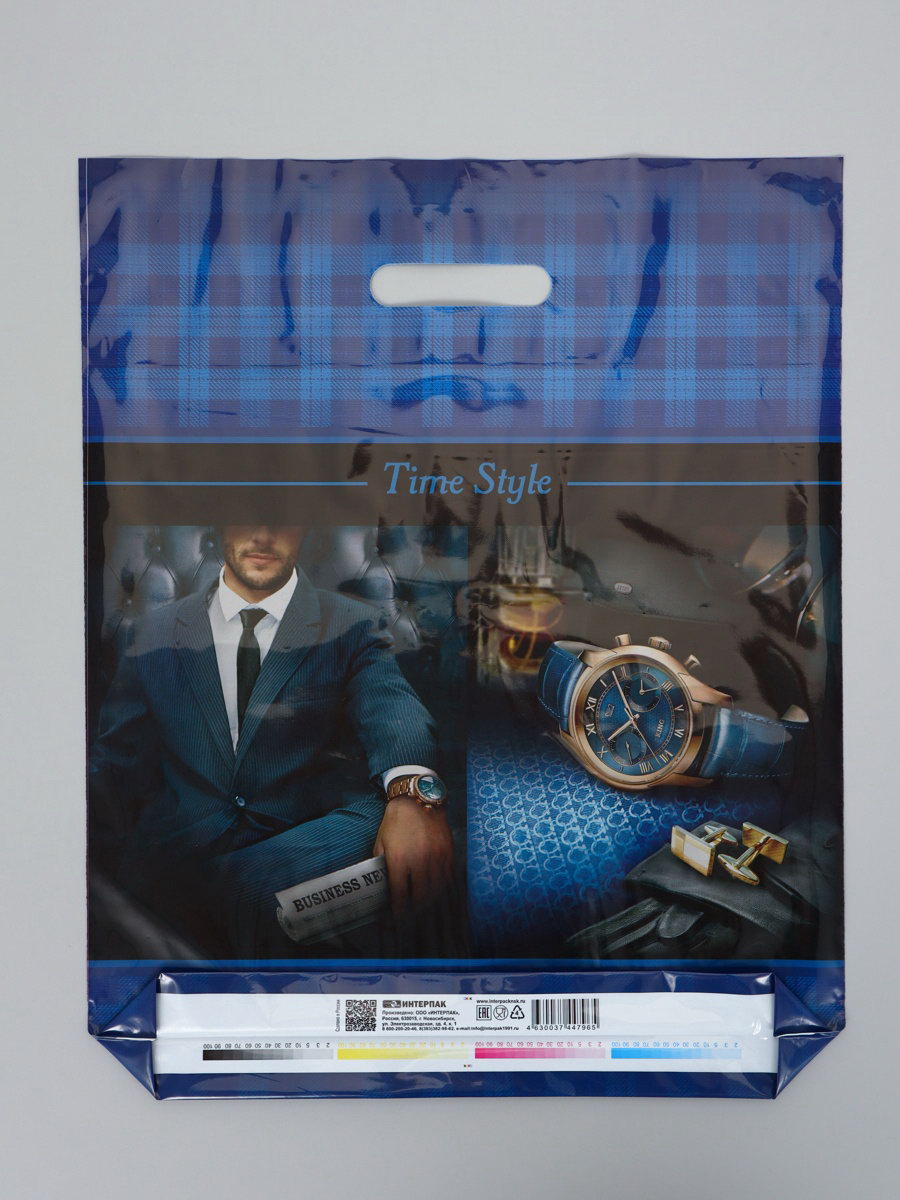 Пакет "Тайм стиль", полиэтиленовый с вырубной ручкой, 38x47 см, 60 мкм, Россия