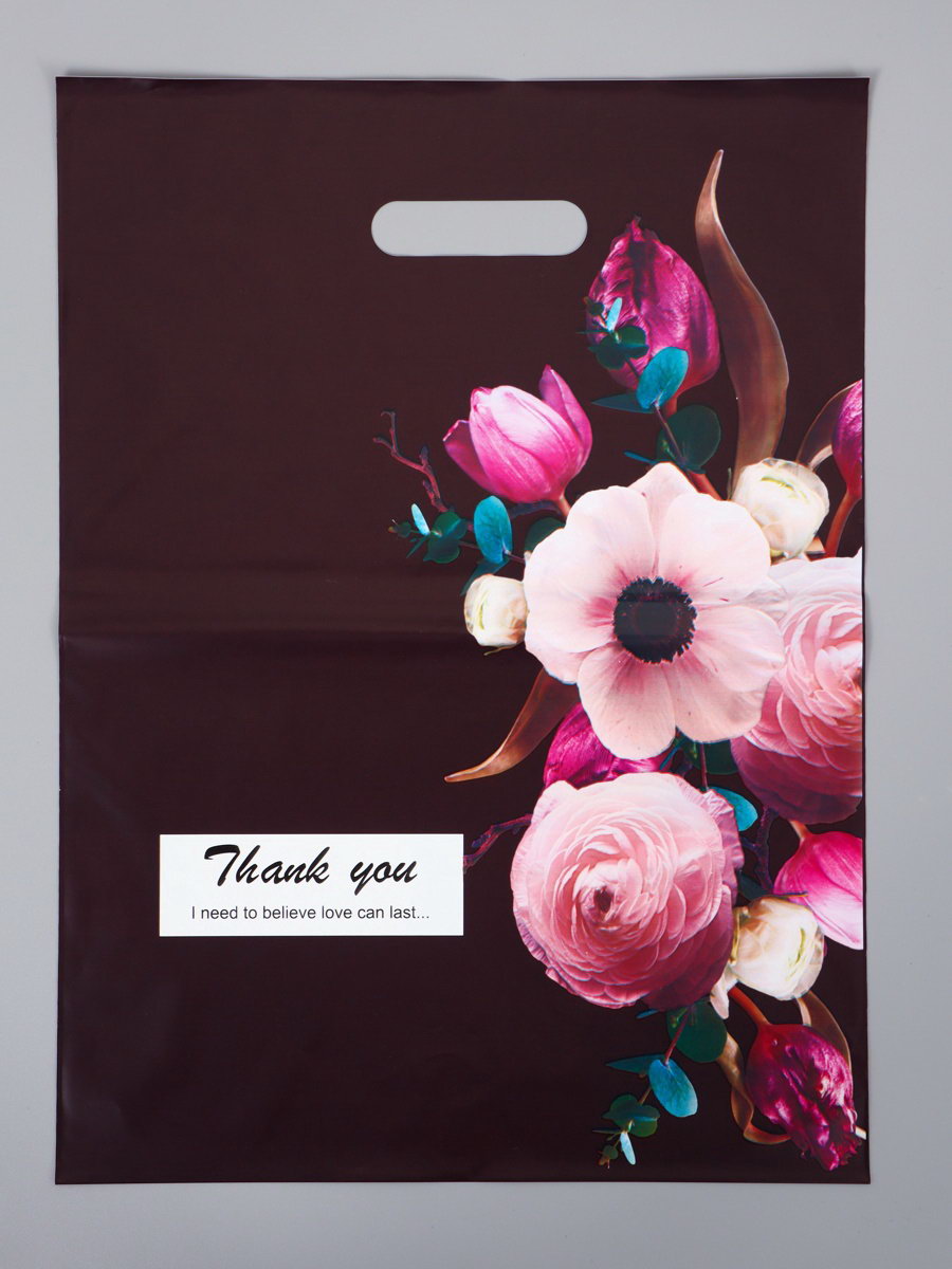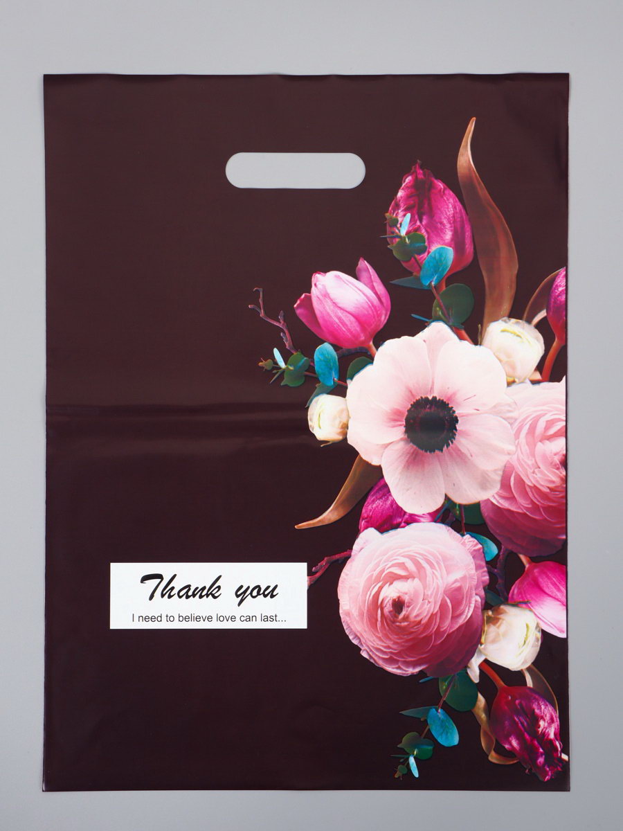 Пакет подарочный полиэтиленовый с вырубной ручкой "Букет", 30x40 см, 60 мкм, 20x30x1 см., Китай