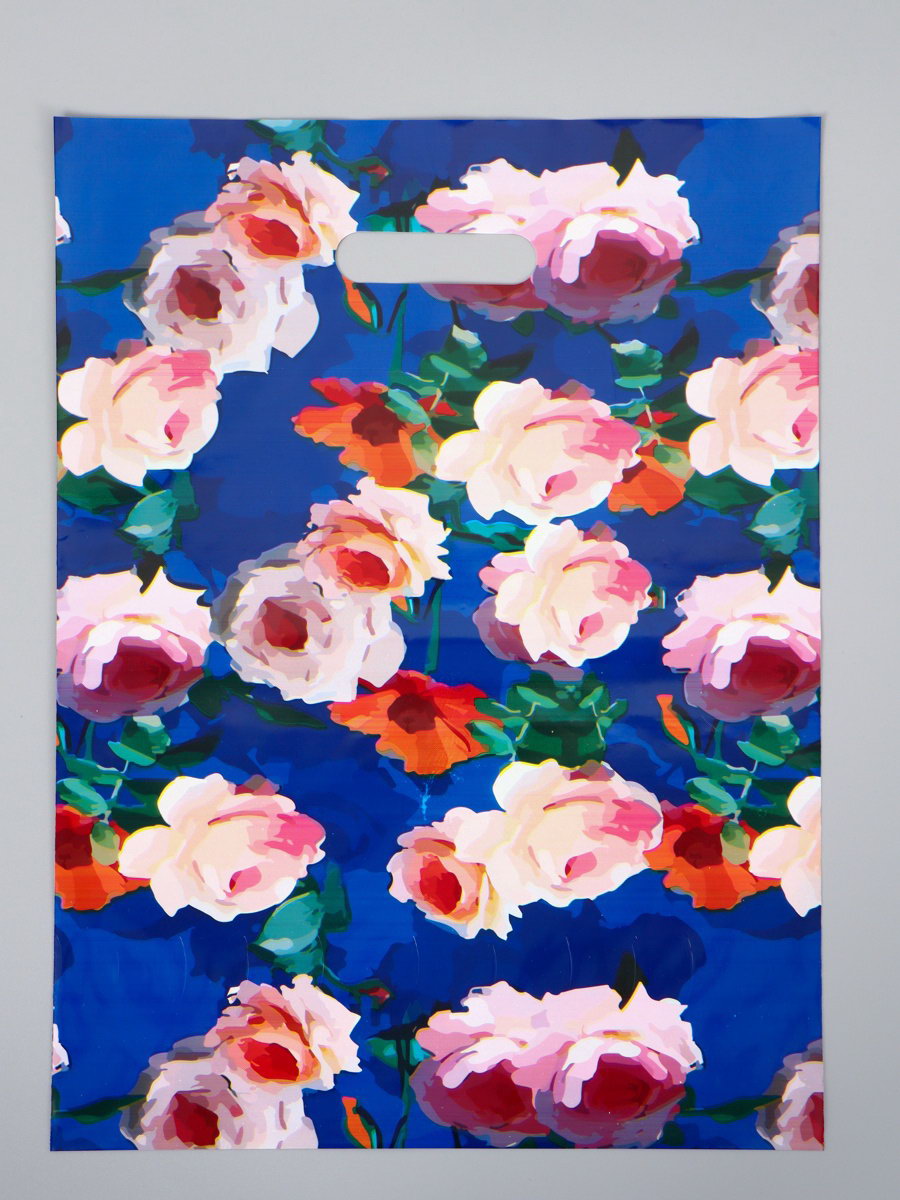 Пакет подарочный полиэтиленовый с вырубной ручкой "Цветение", 30x40 см, 60 мкм, 20x30x1 см., Китай
