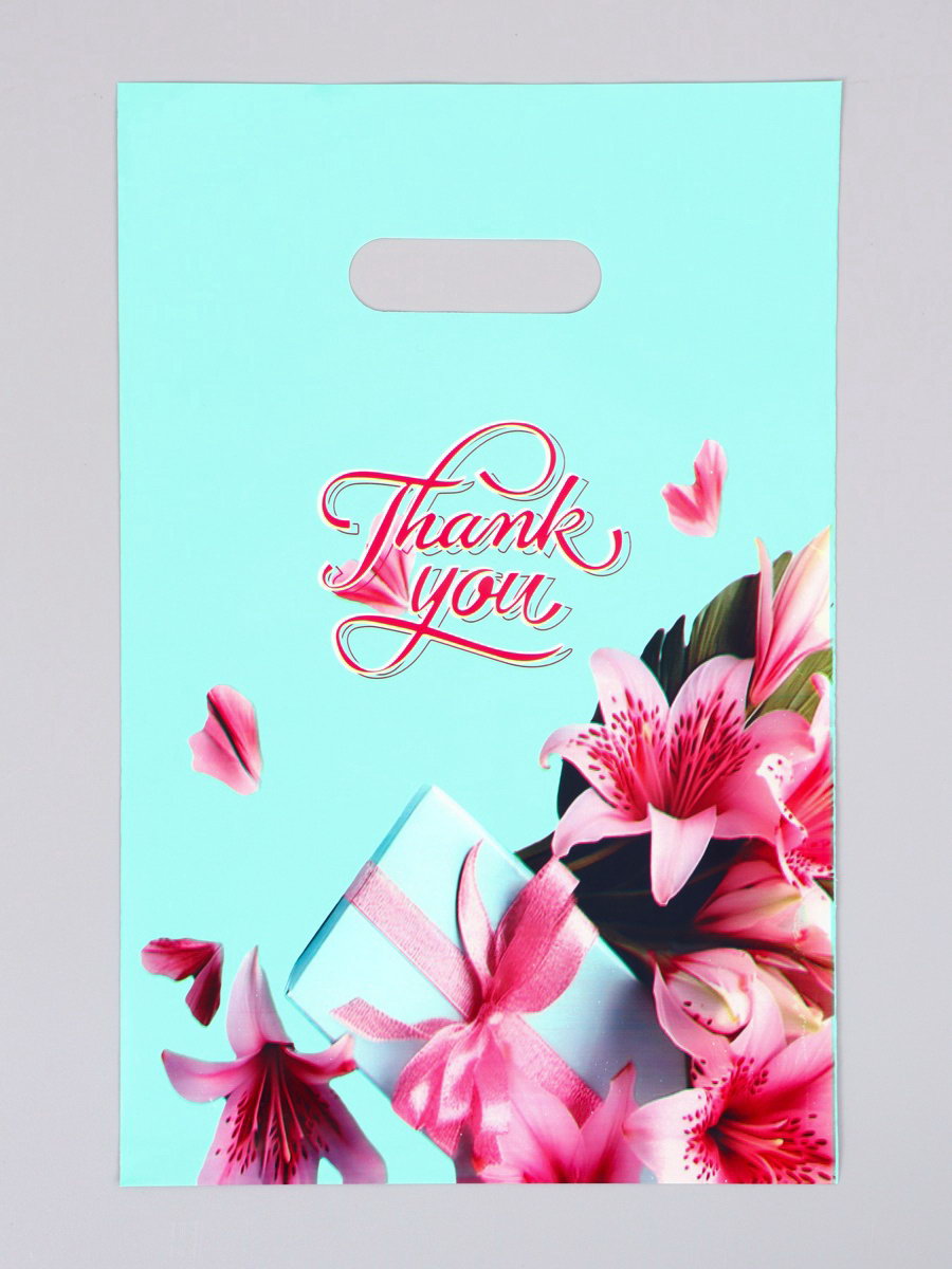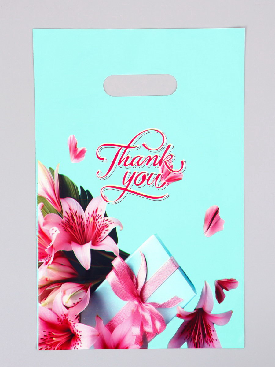 Пакет подарочный полиэтиленовый с вырубной ручкой "Тебе", 20x30 см, 60 мкм, 15x20x1 см., Китай