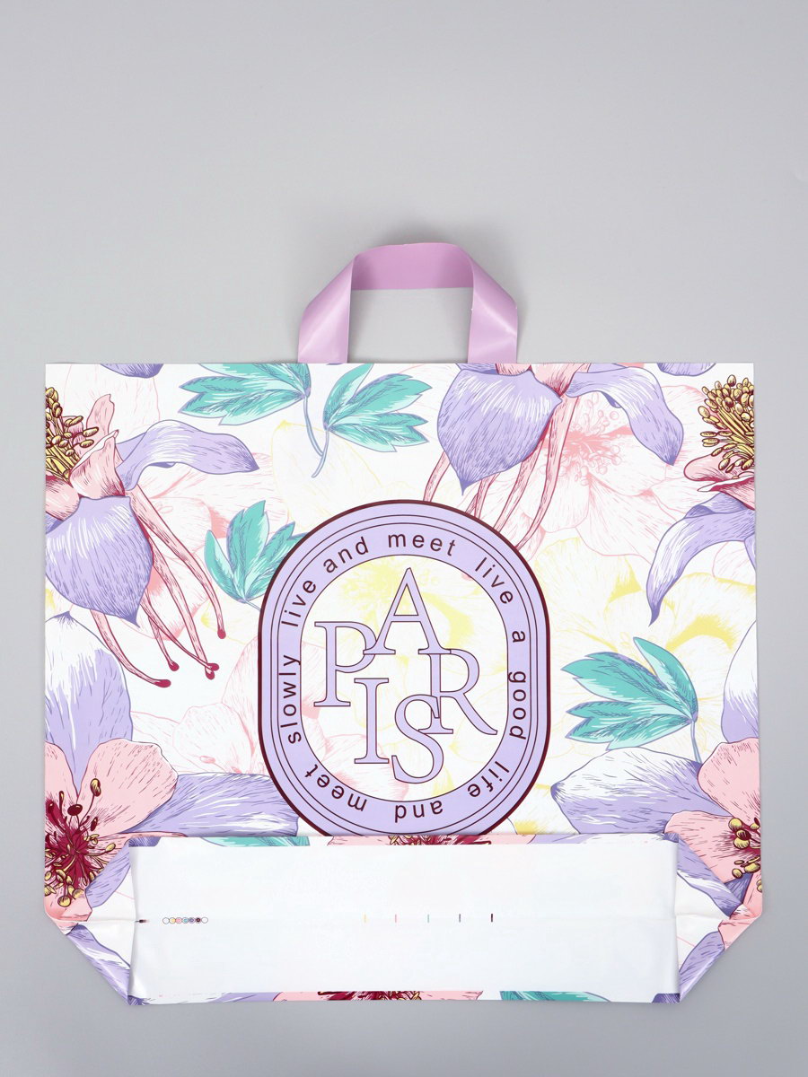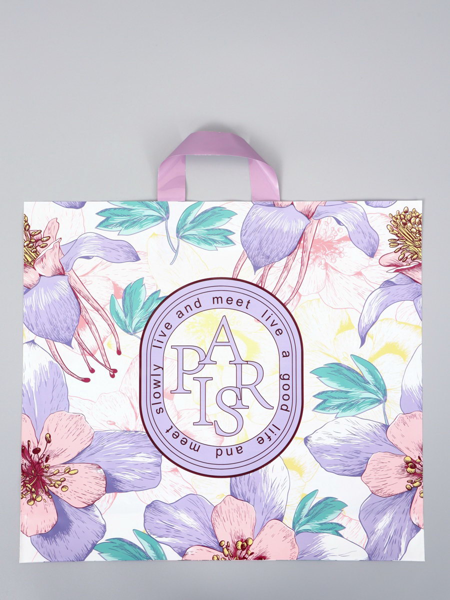 Пакет полиэтиленовый с петлевой ручкой "Цветочный", 45x40x8 см, 60 мкм, 20x22.5x1 см., Китай