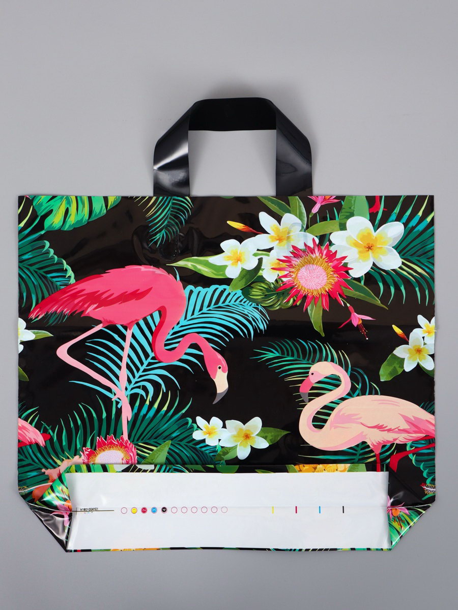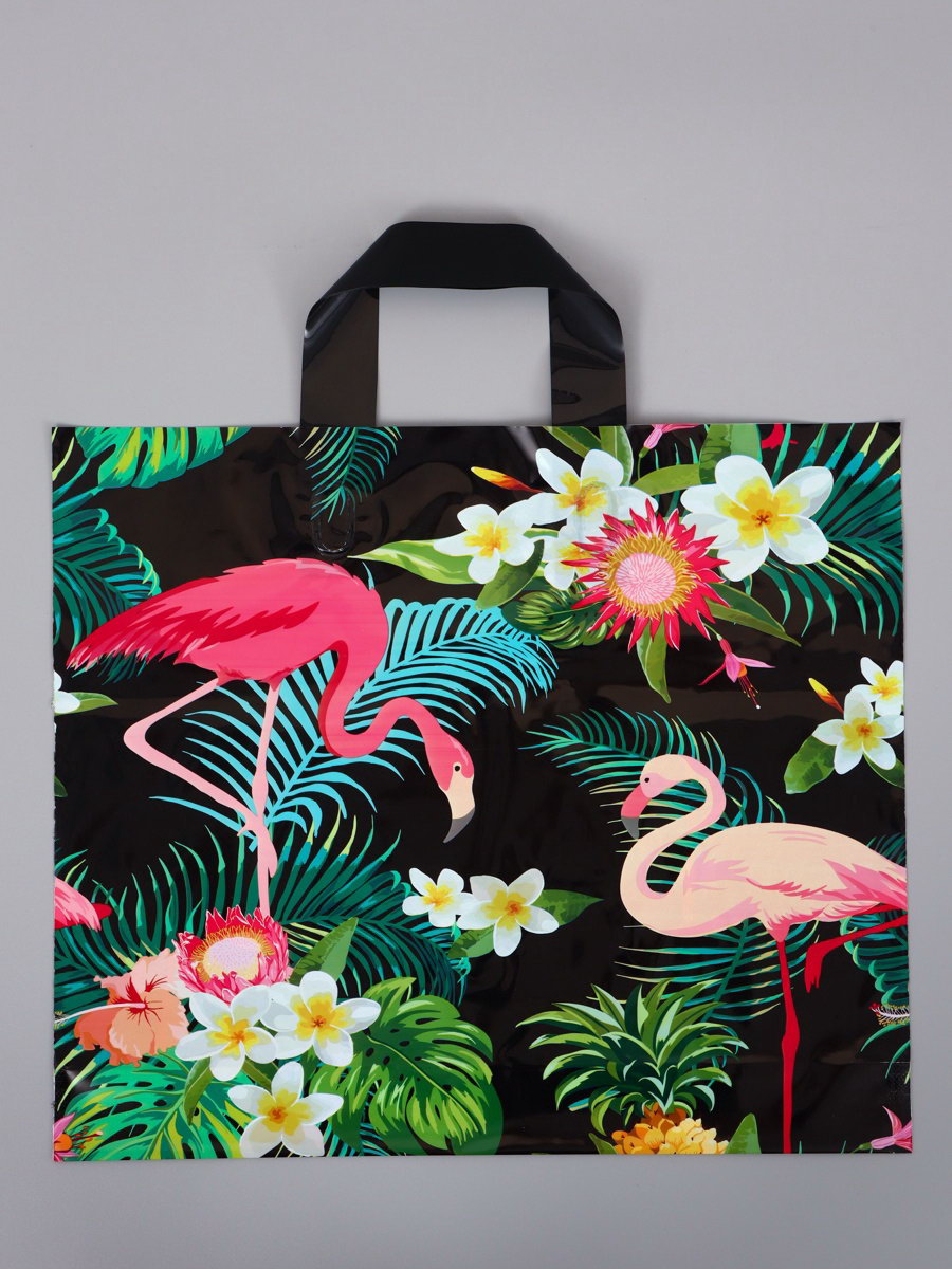 Пакет полиэтиленовый с петлевой ручкой "Фламинго", 35x30x8 см, 60 мкм, 15x17.5x1 см., Китай