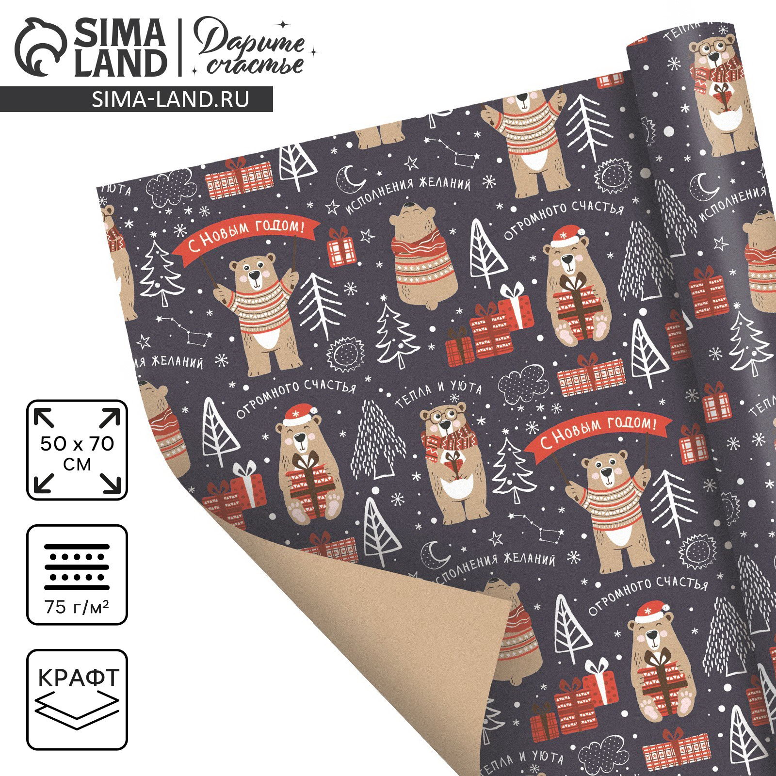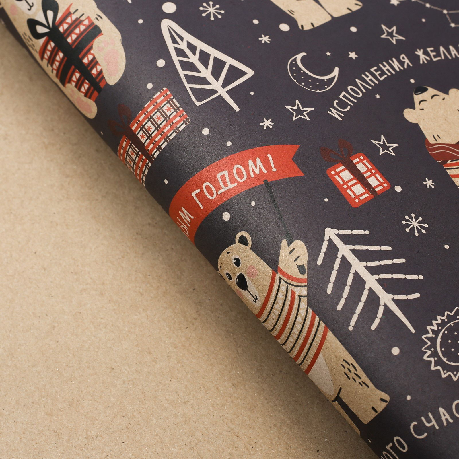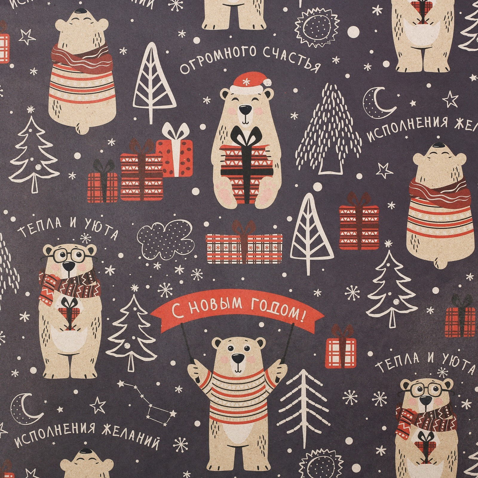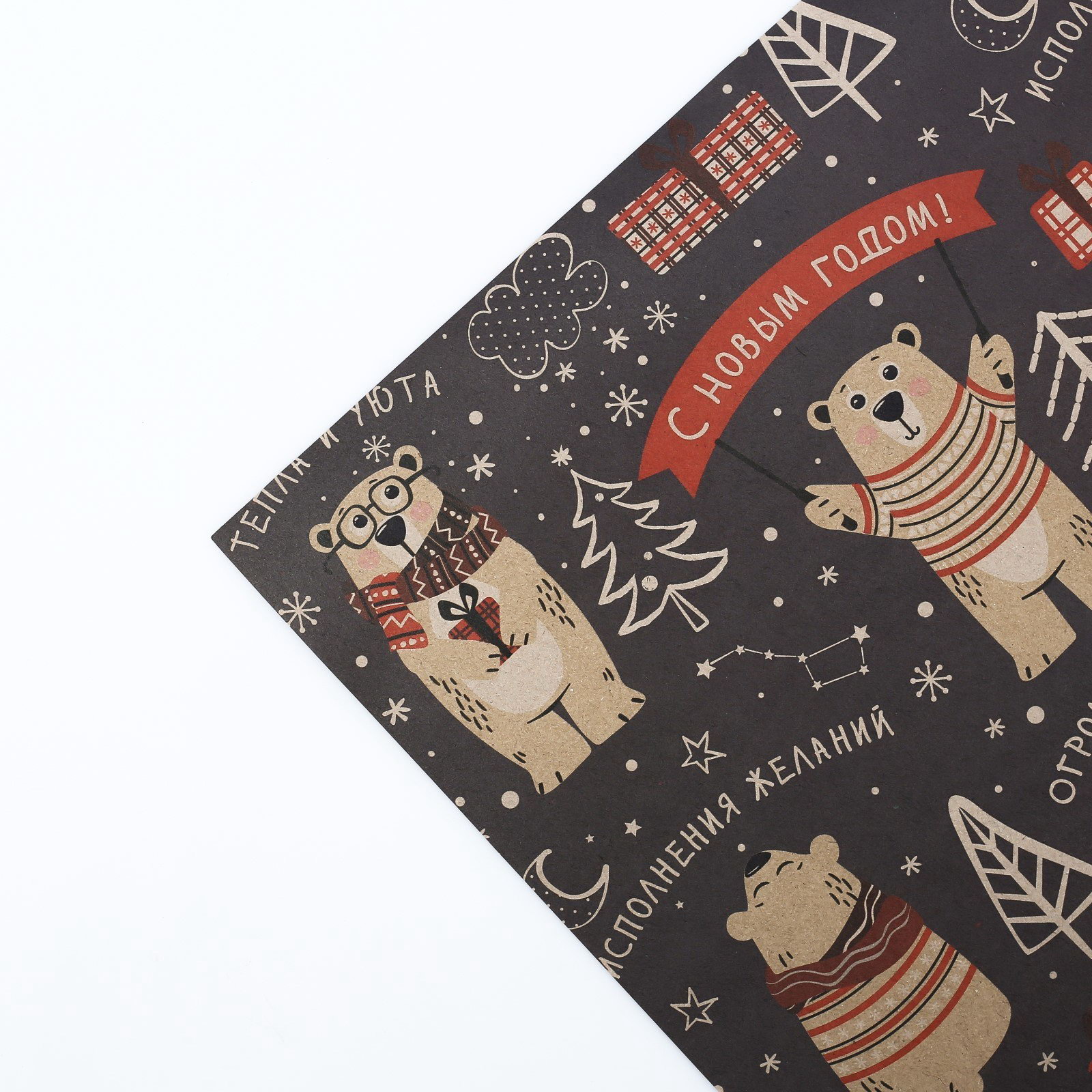Бумага упаковочная крафтовая "Полярный мишка", 50x70 см, Дарите Счастье, Россия