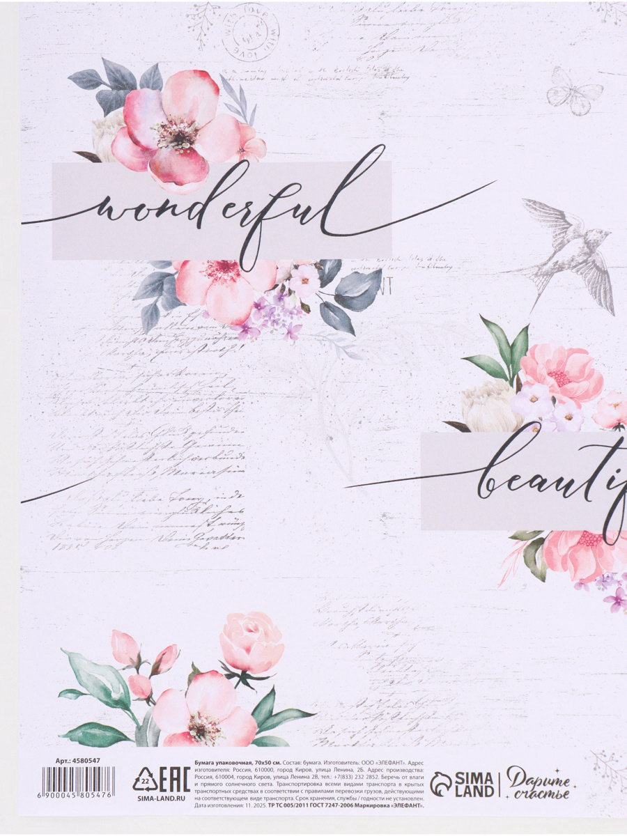 Особенность крафта: Отбелённый, С рисунком Тематика праздника: 8 Марта, Универсальная тематика Тематика: Надписи, цифры, буквы, Цветочно-растительная Размер упаковки: 0.5 x 0.2 x 50 см. Особенность: Крафтовый(ая) Рисунок: Да В рулоне: Нет Плотность, г/?2: 70 Набор: Нет tnved: 4811900000 Дизайн: С рисунком, надписью Цвет: Белый Для кого: Для женщины Температурное ограничение: Нет Вид: В листах Размер, м: 0.5 x 0.7 Тип листа: Односторонний | ||