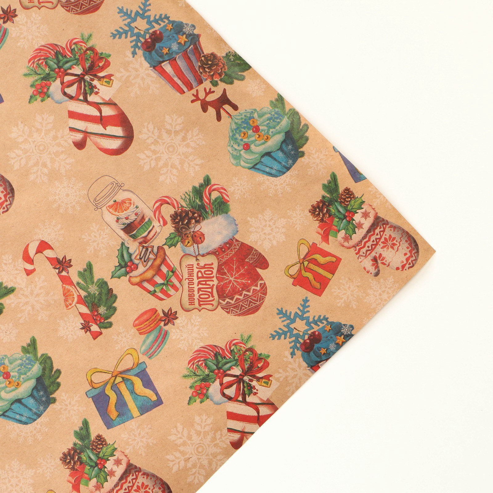 Бумага упаковочная новогодняя крафтовая "Вкусный праздник", 50x70 см, Дарите Счастье, Россия