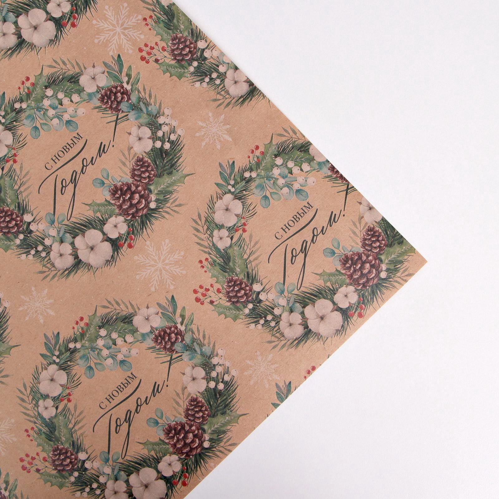 Бумага упаковочная новогодняя крафтовая "Венки", 50 x 70 см, Дарите Счастье, Россия