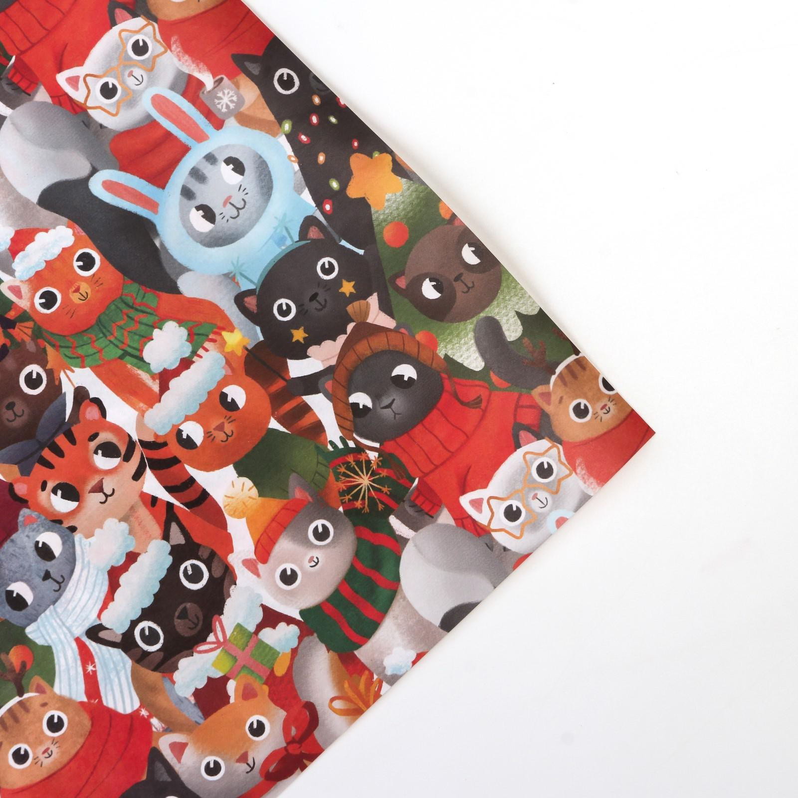 Бумага упаковочная крафтовая "Котики", 50x70 см, Дарите Счастье, Россия