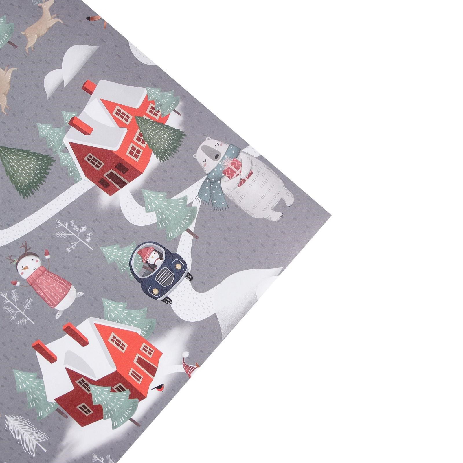 Упаковочная бумага на новый год крафтовая "Зимние забавы", 70x100 см, Дарите Счастье, Россия
