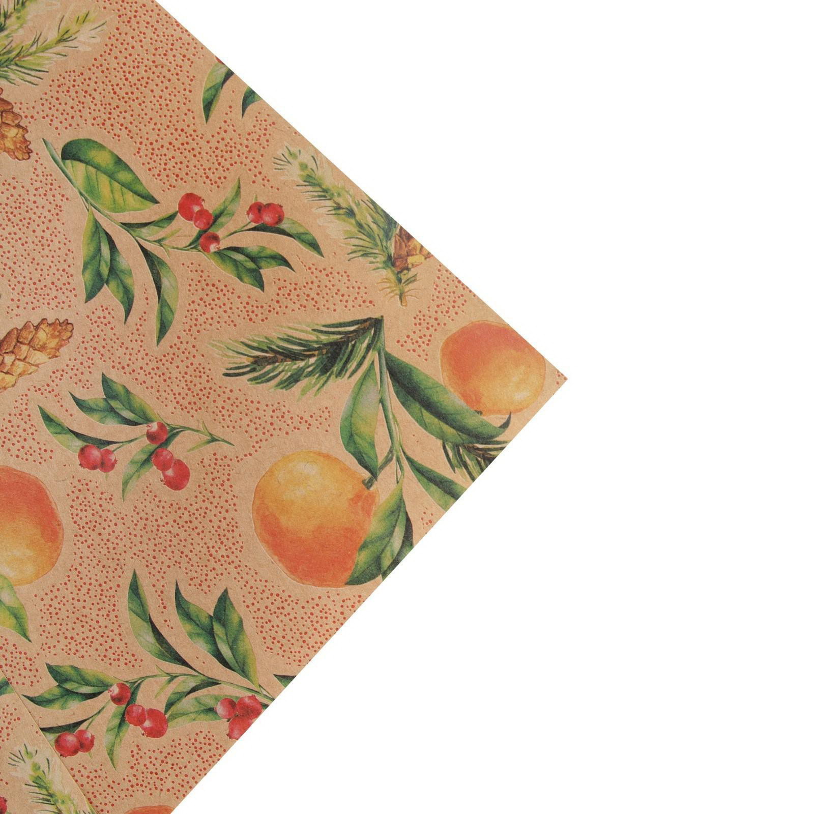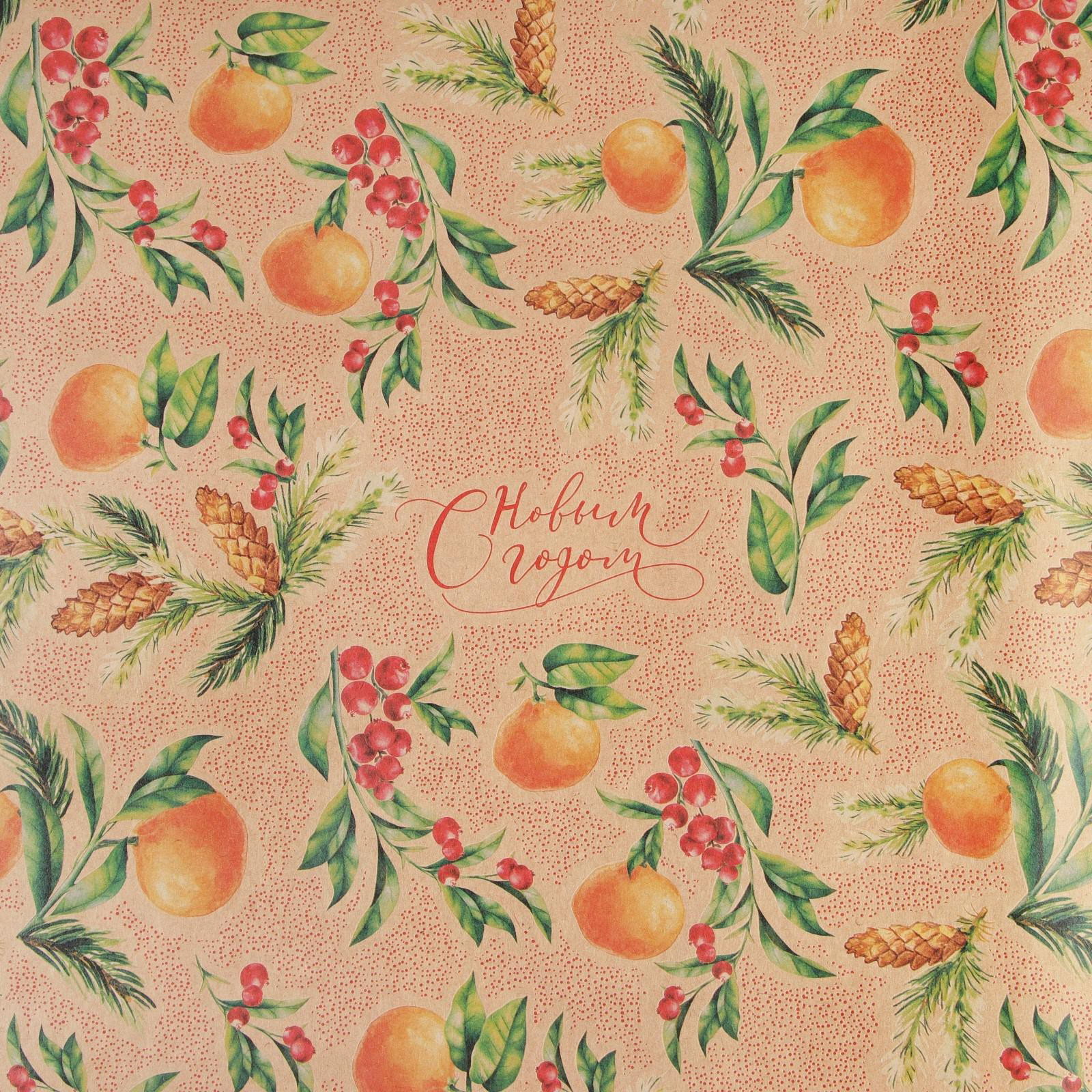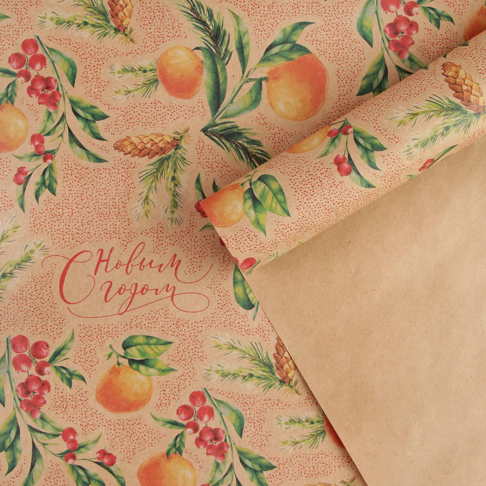 Упаковочная бумага на новый год крафтовая "Мандарины", 70x100 см, Дарите Счастье, Россия