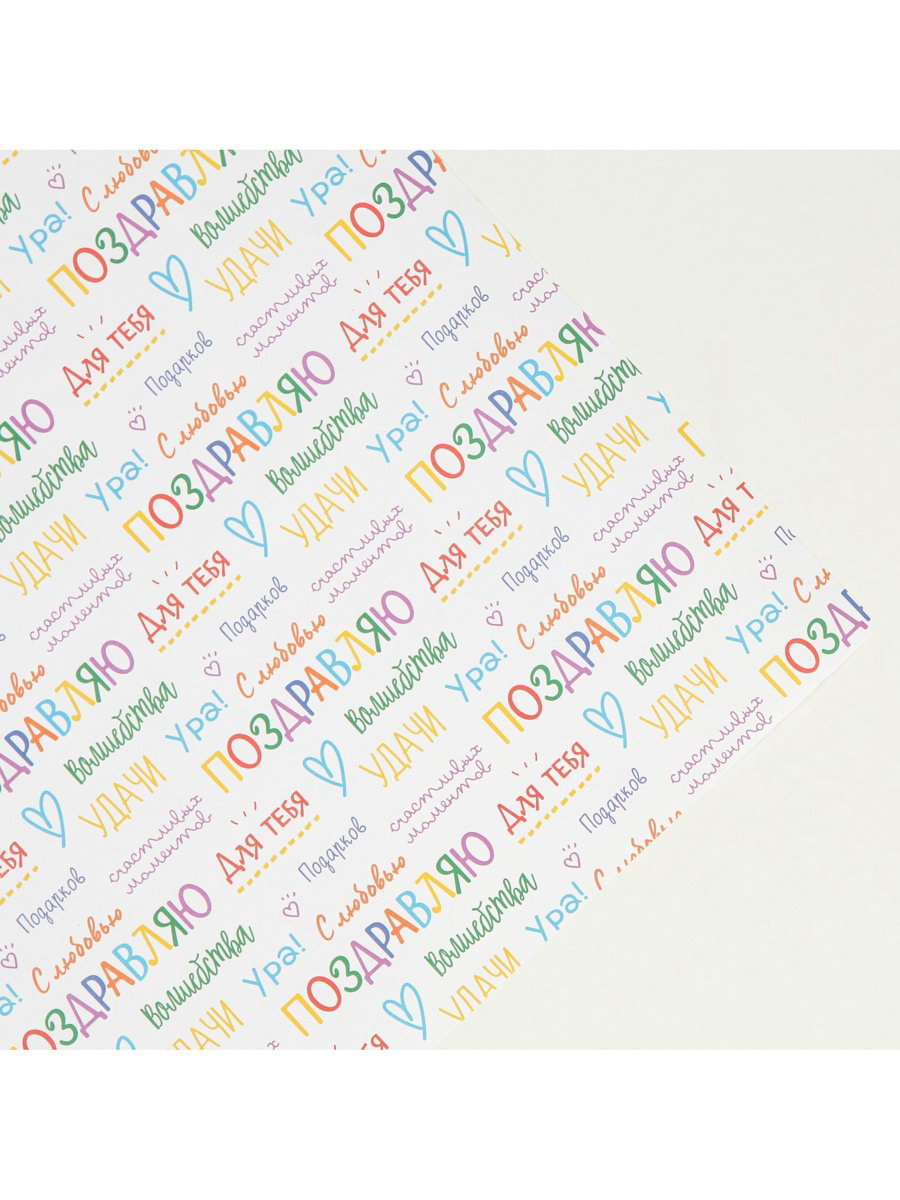 Бумага упаковочная крафтовая "Поздравляю", 70 x 100 см, Дарите Счастье, Россия