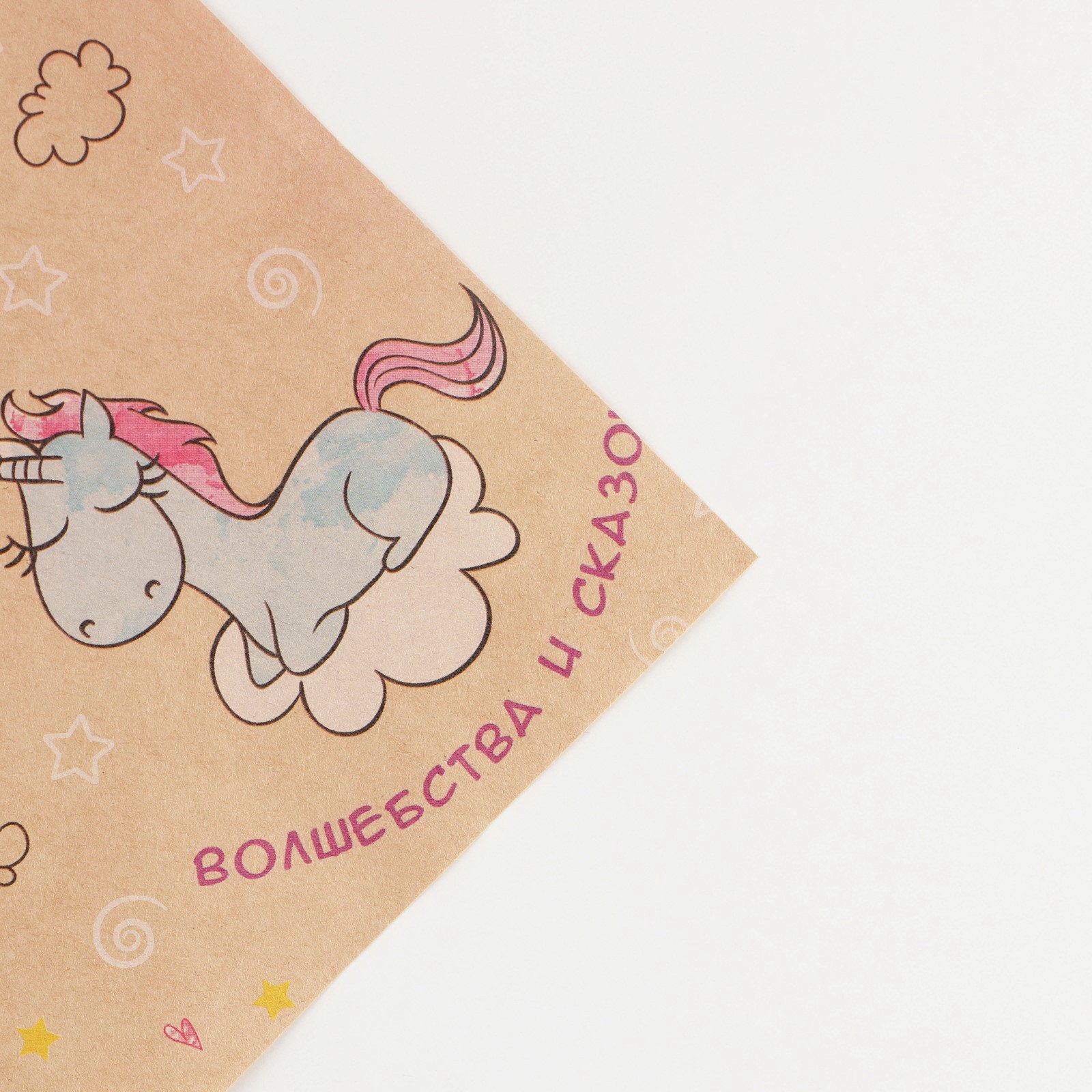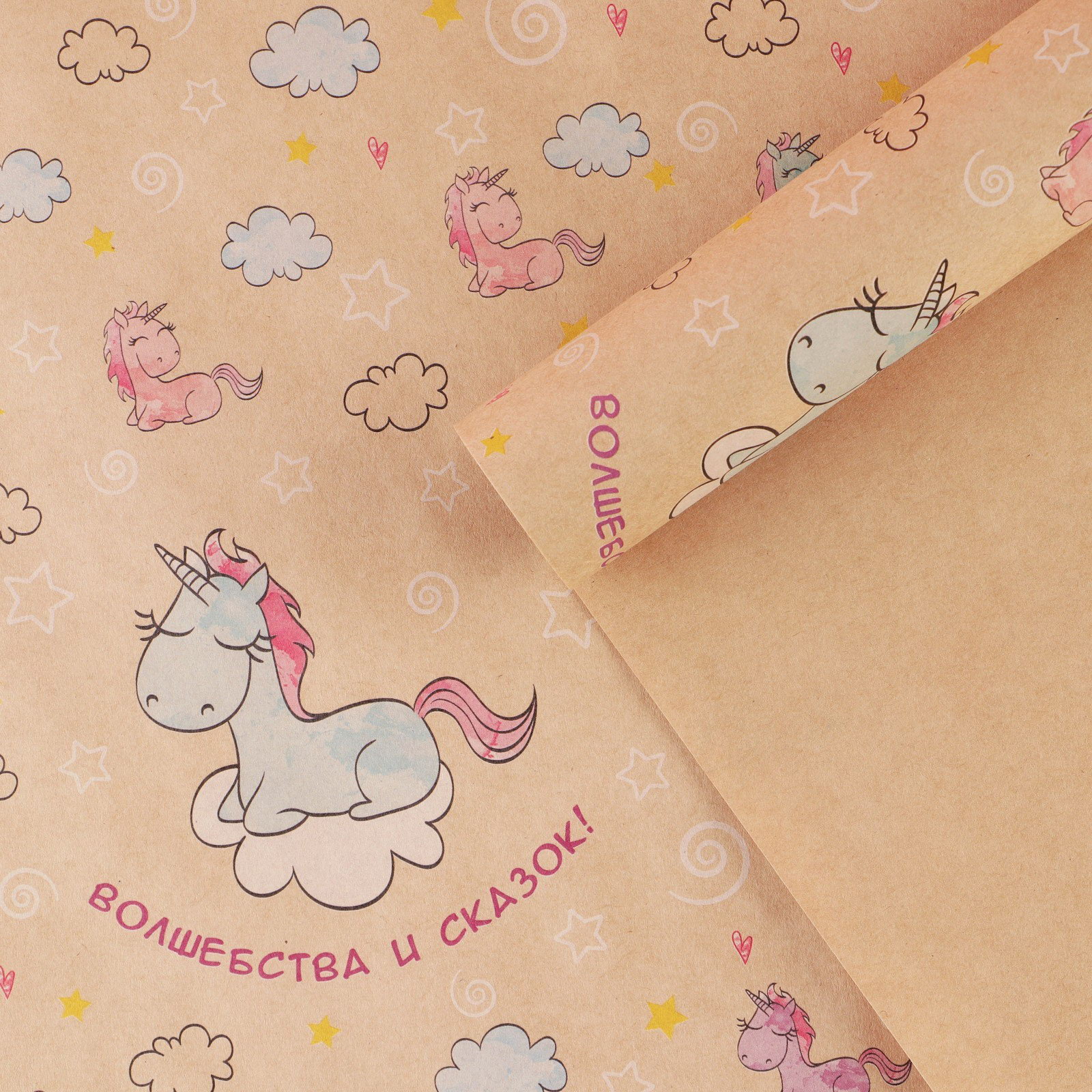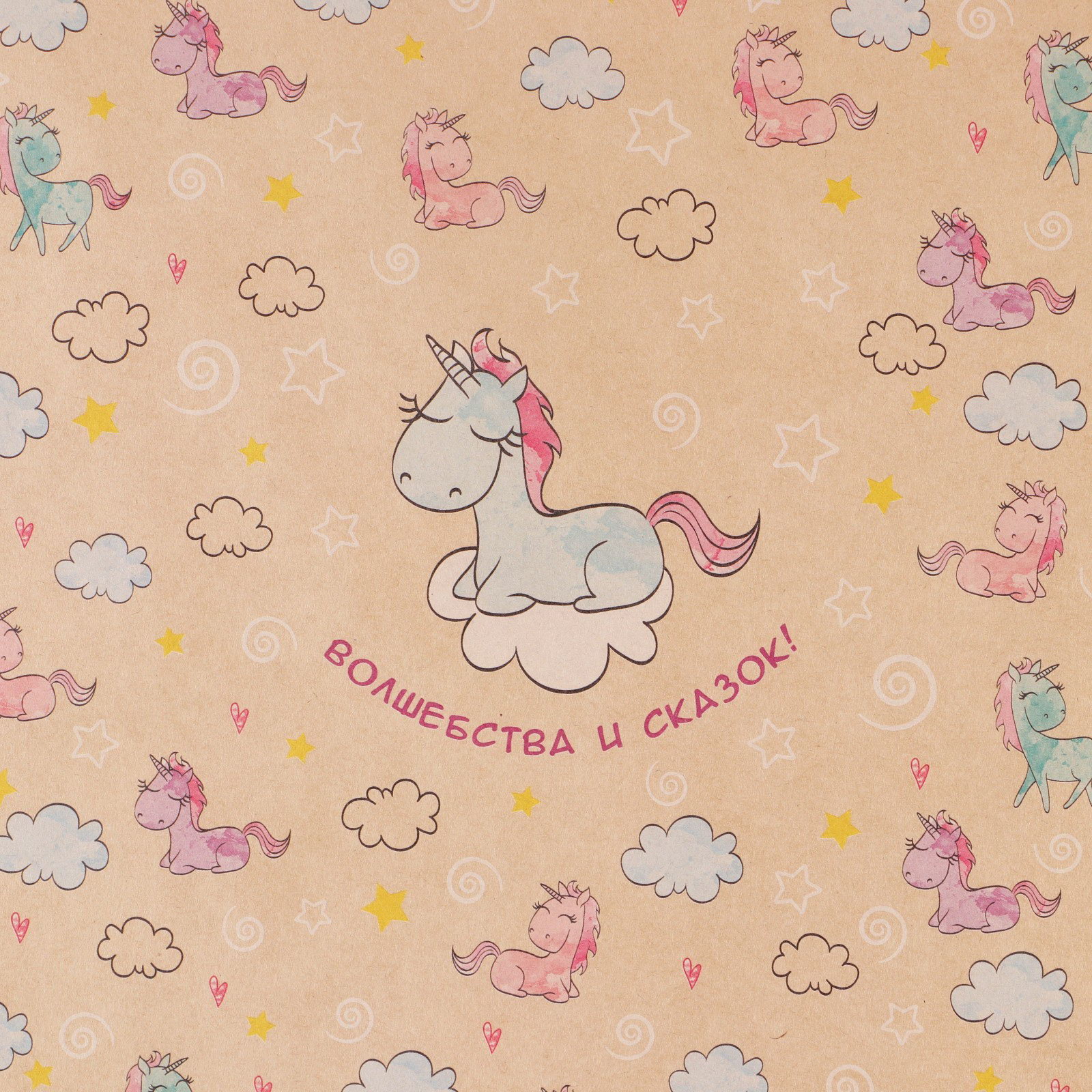 Бумага упаковочная крафтовая "Единороги", 70x100 см, Дарите Счастье, Россия