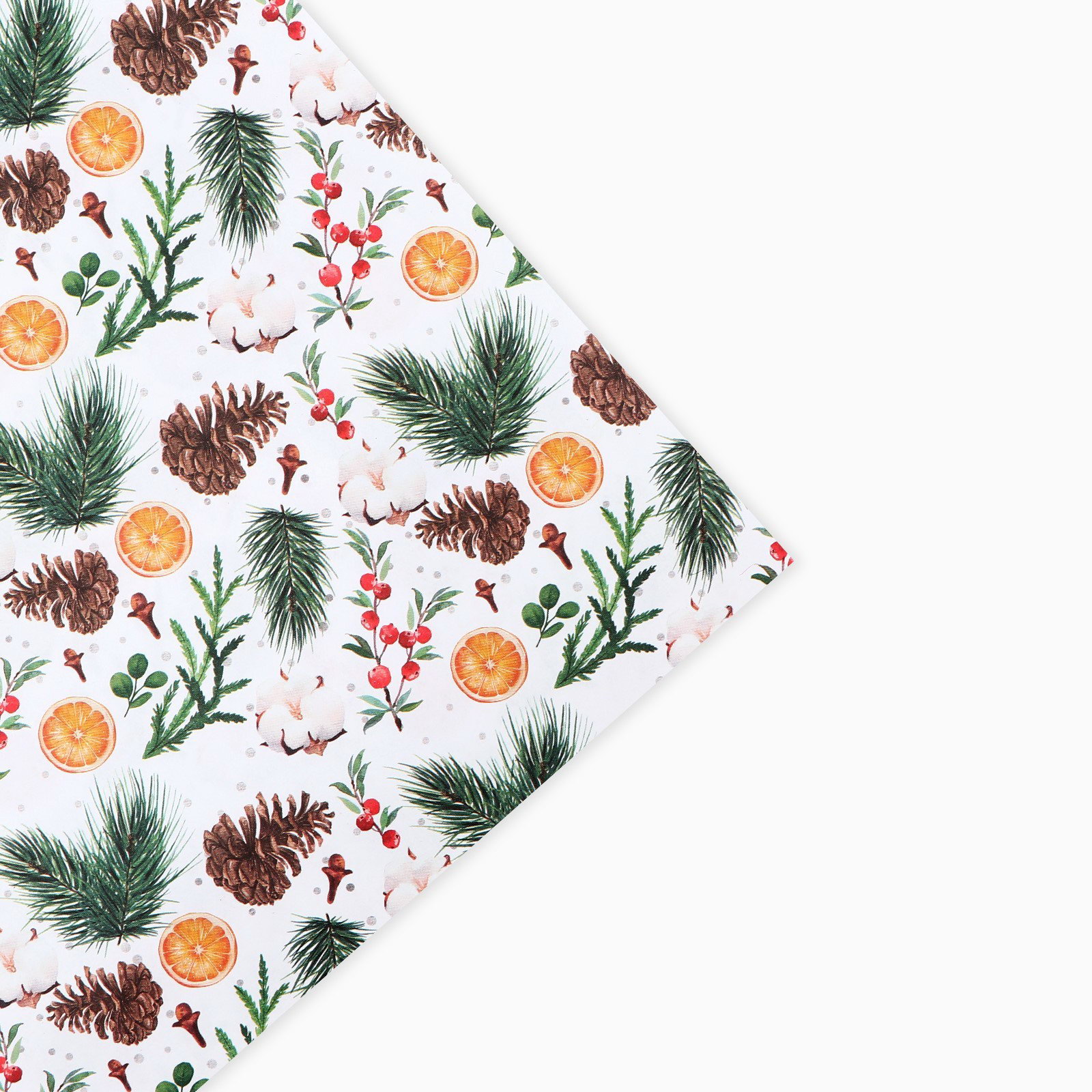 Бумага упаковочная новогодняя крафтовая "Шишки и хлопок", 50x70 см, Дарите Счастье, Россия